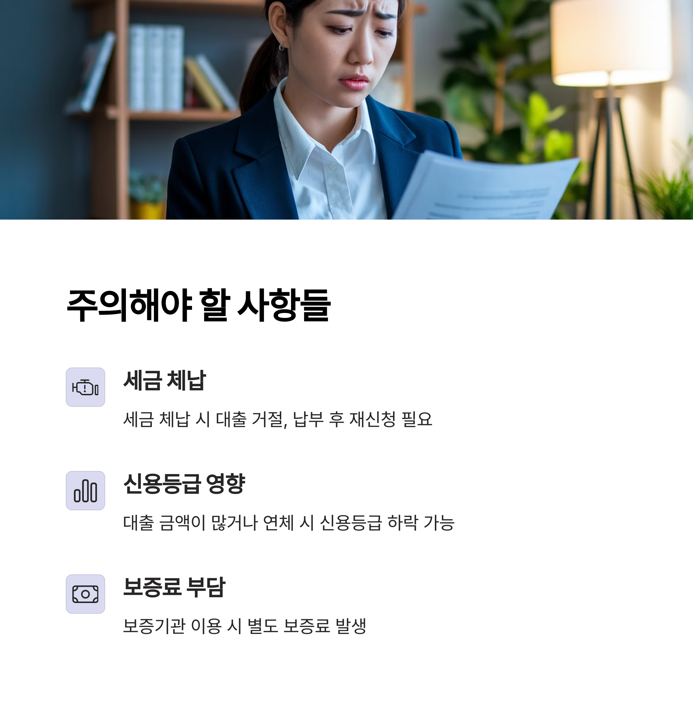세금 체납이 있다면 대부분 대출이 거절됩니다. 납부 후 재신청이 필요합니다.