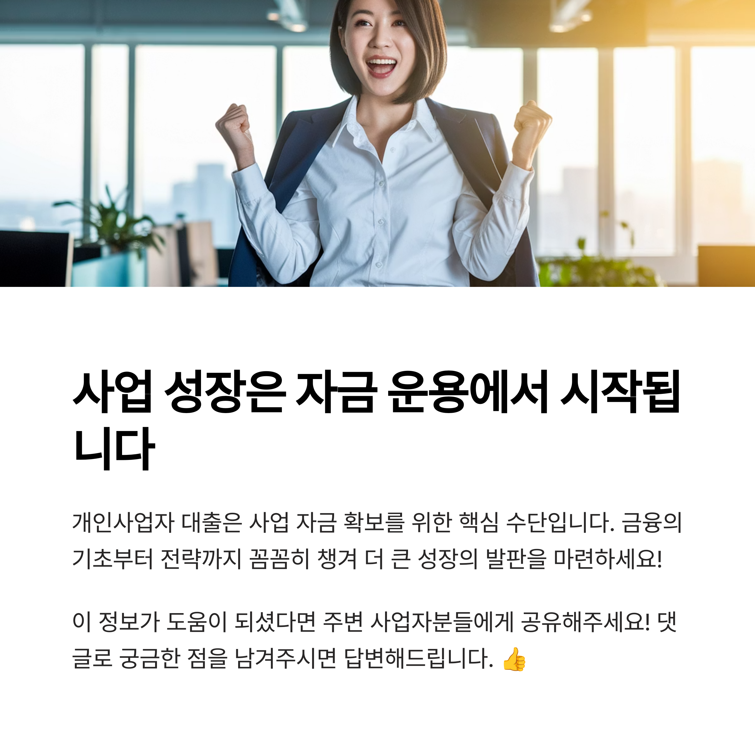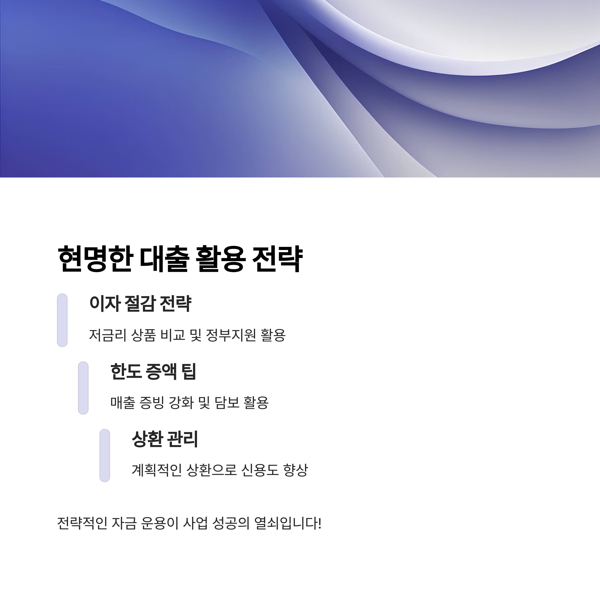 개인사업자 대출은 사업 자금 확보를 위한 핵심 수단입니다. 하지만 무턱대고 신청하면 높은 이자와 불리한 조건에 묶일 수 있습니다. 이번 글에서 소개한 이자 절감 전략, 한도 증액 팁, 대출 상품 정보를 참고하셔서 보다 현명한 대출 활용 하시기 바랍니다.
