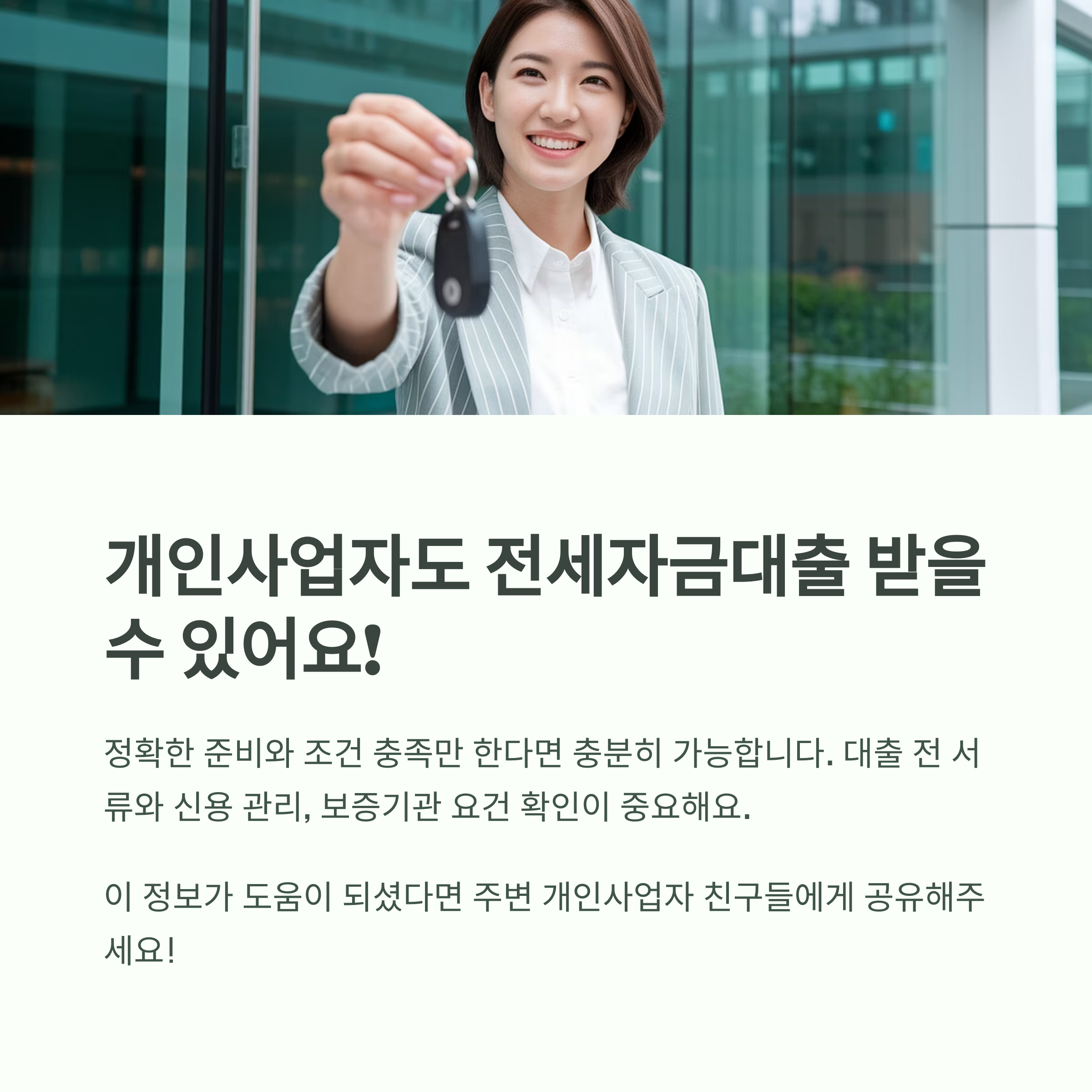 개인사업자도 정확한 준비와 조건 충족만 한다면 충분히 전세자금대출을 받을 수 있습니다. 중요한 건 대출 전에 서류와 신용 관리, 보증기관 요건 확인, 그리고 무리한 한도 신청을 피하는 것입니다.