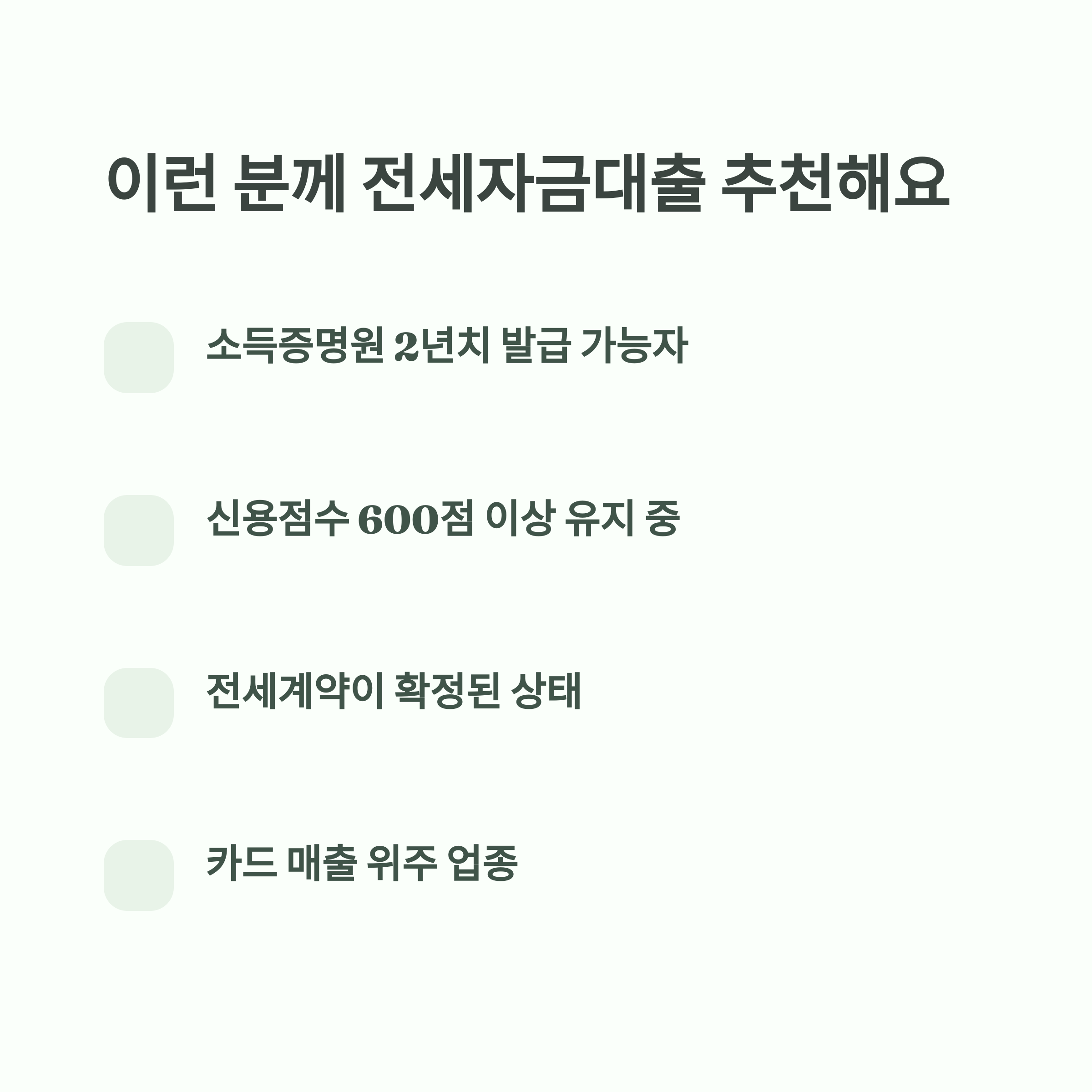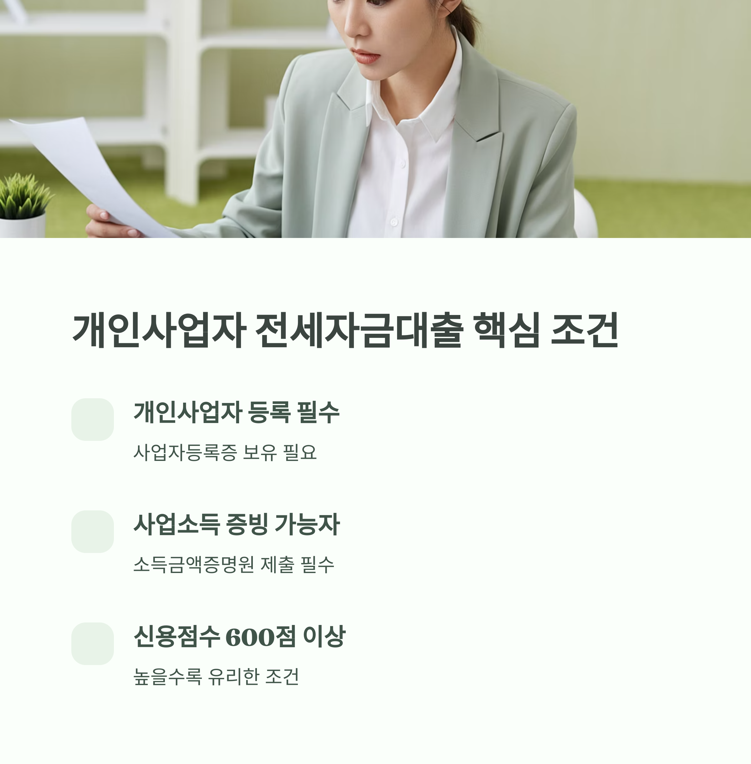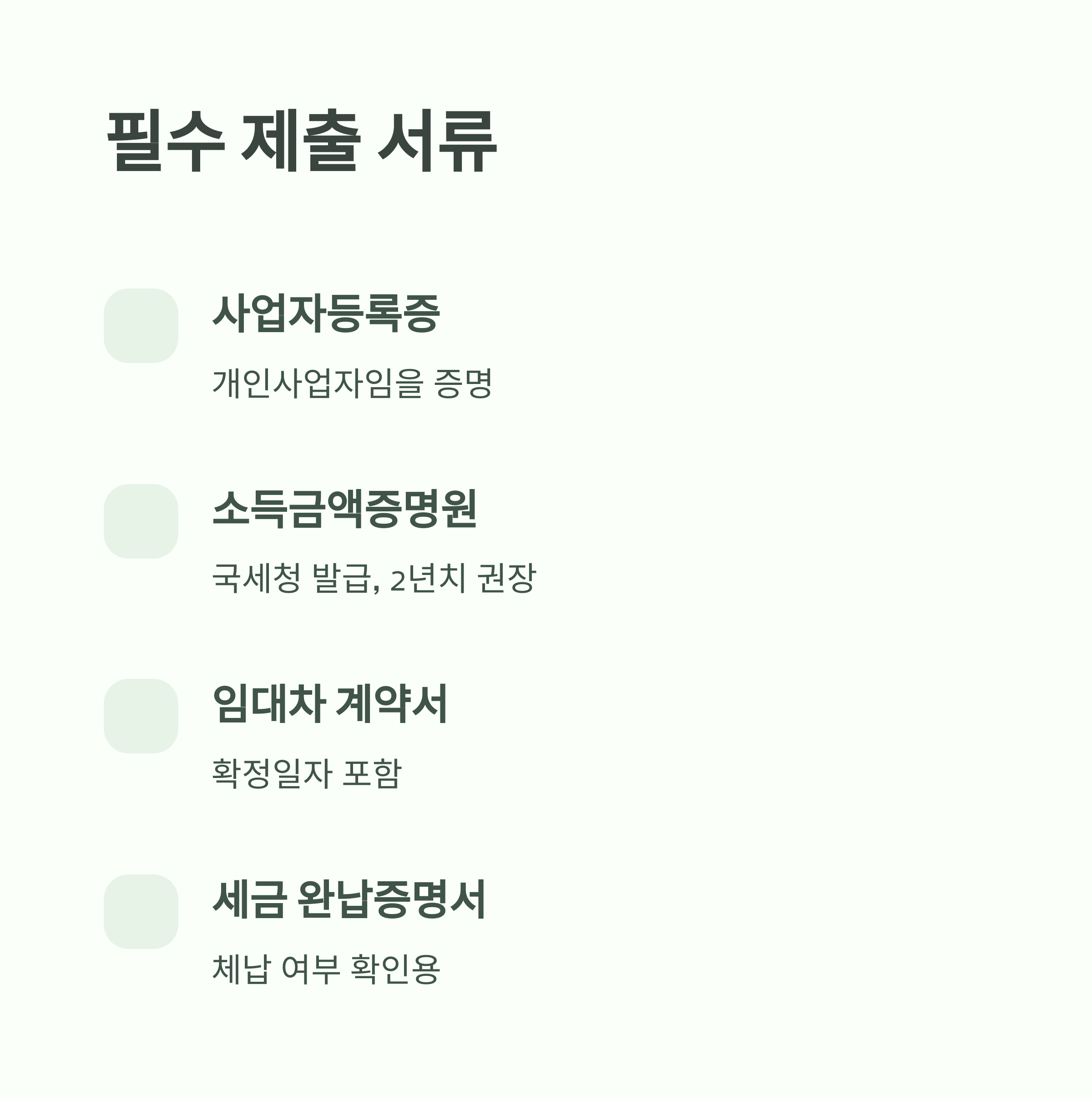 - 조건: 소득금액증명원 제출 가능 개인사업자