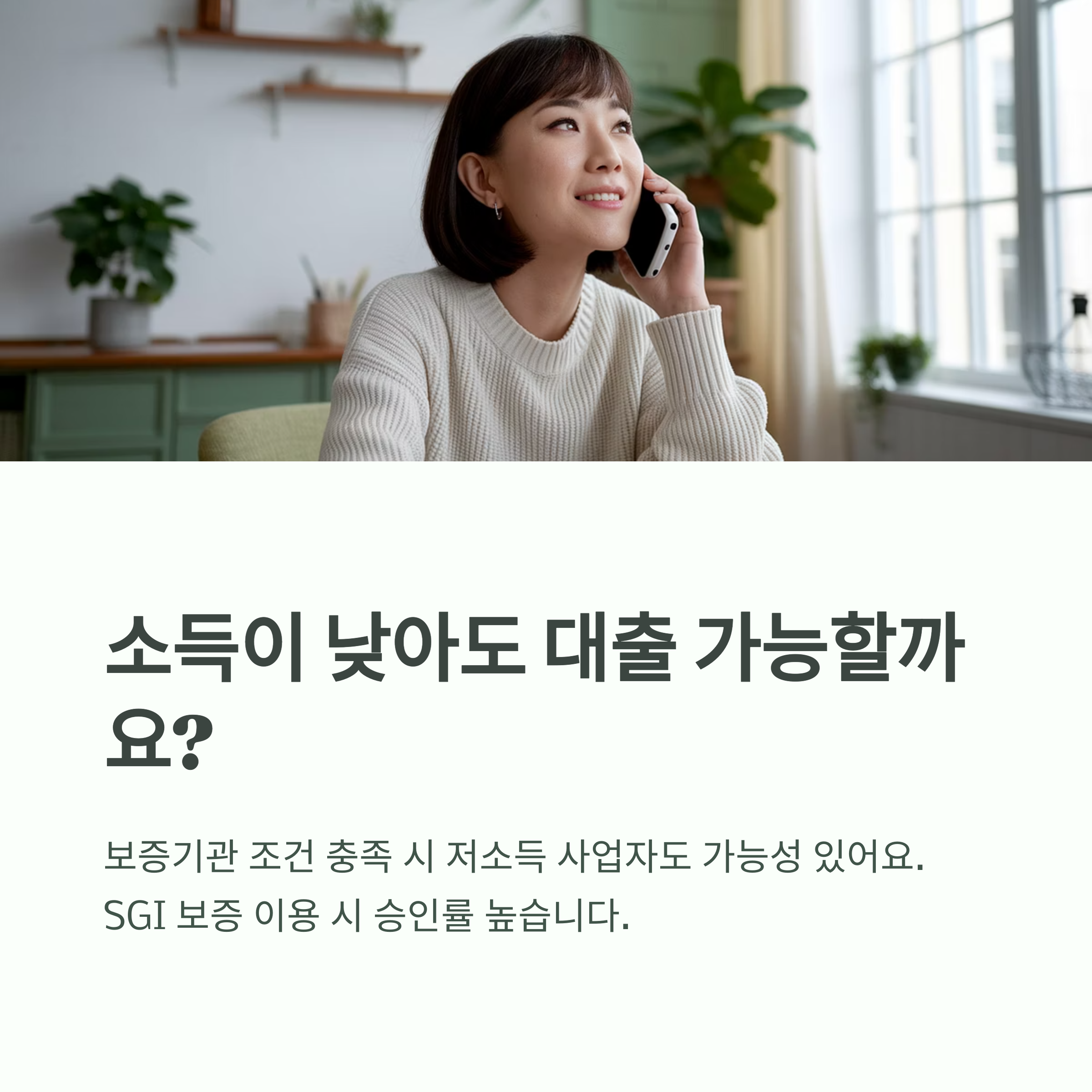 A1. 아닙니다. 보증기관의 조건을 충족한다면 일부 저소득 사업자도 대출 가능성이 있습니다. 특히 SGI 보증 이용 시 승인률이 높습니다.