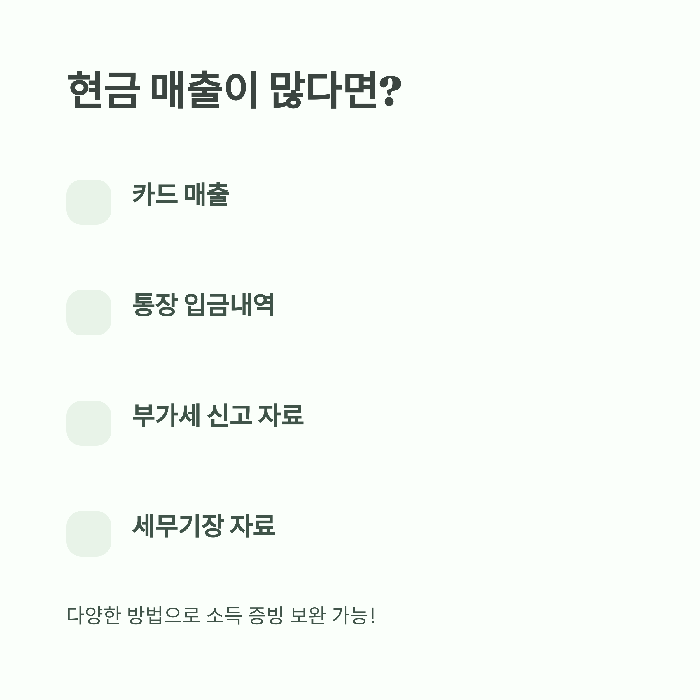 Q2. 현금 매출이 대부분인데 어떻게 소득을 증빙하나요?