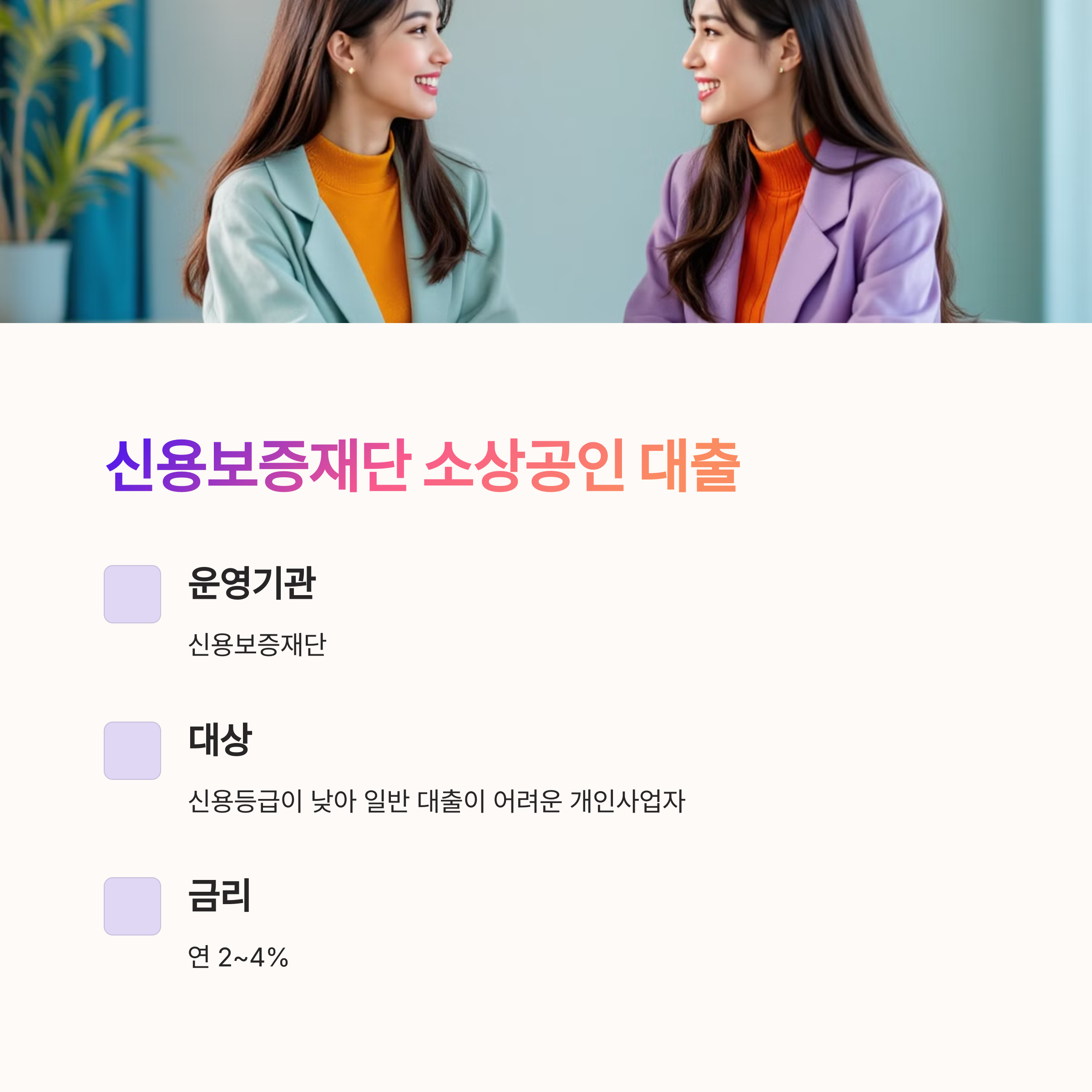 ▶ 대상: 신용등급이 낮아 일반 대출이 어려운 개인사업자