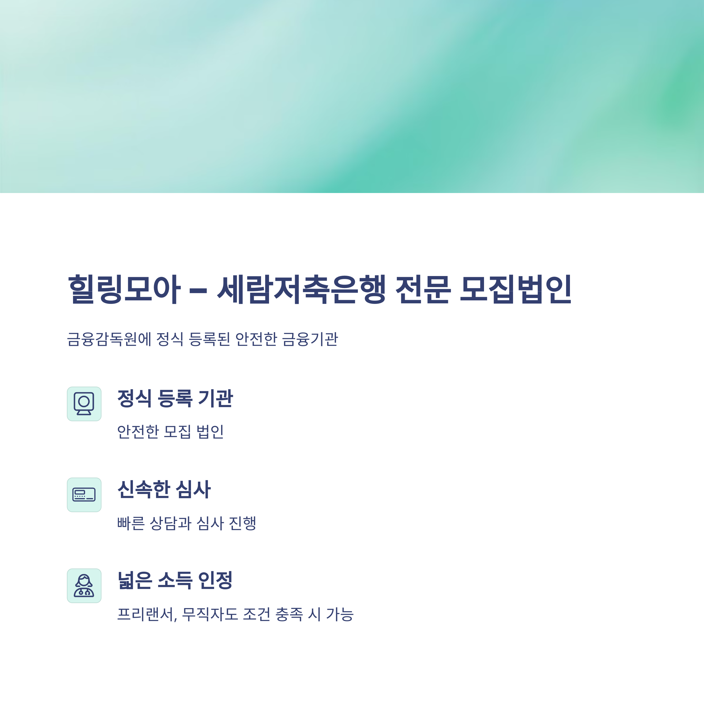 ✔ 힐링모아 – 세람저축은행 전문 모집법인