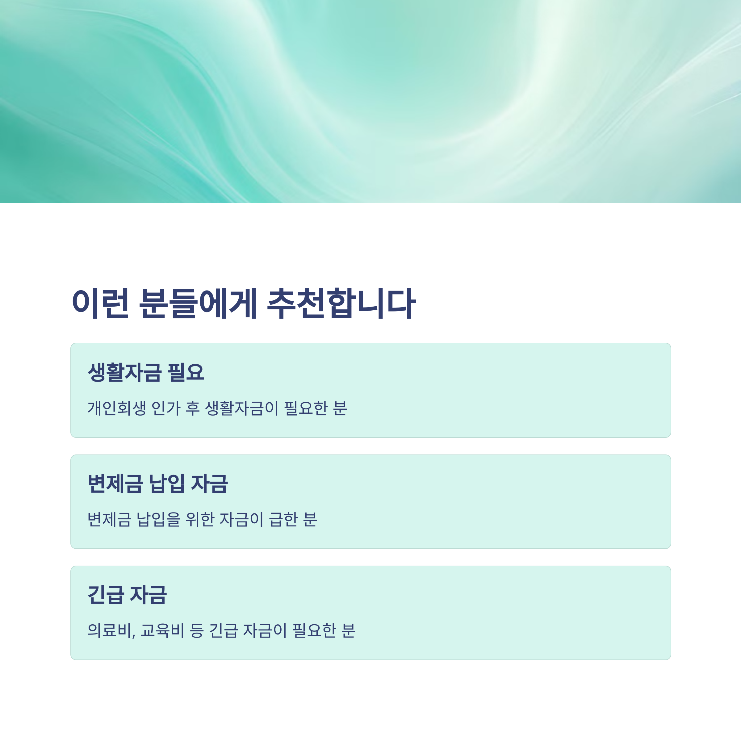 개인회생 절차를 밟고 있는 분들이 가장 많이 하는 고민 중 하나는 “생활비나 변제금을 어떻게 마련하지?”입니다. 개인회생을 시작하면 금융 거래가 제한되기 때문에 일반 대출은 물론 신용카드 사용조차 어렵고, 많은 분들이 급한 자금 마련에 큰 어려움을 겪고 있죠.