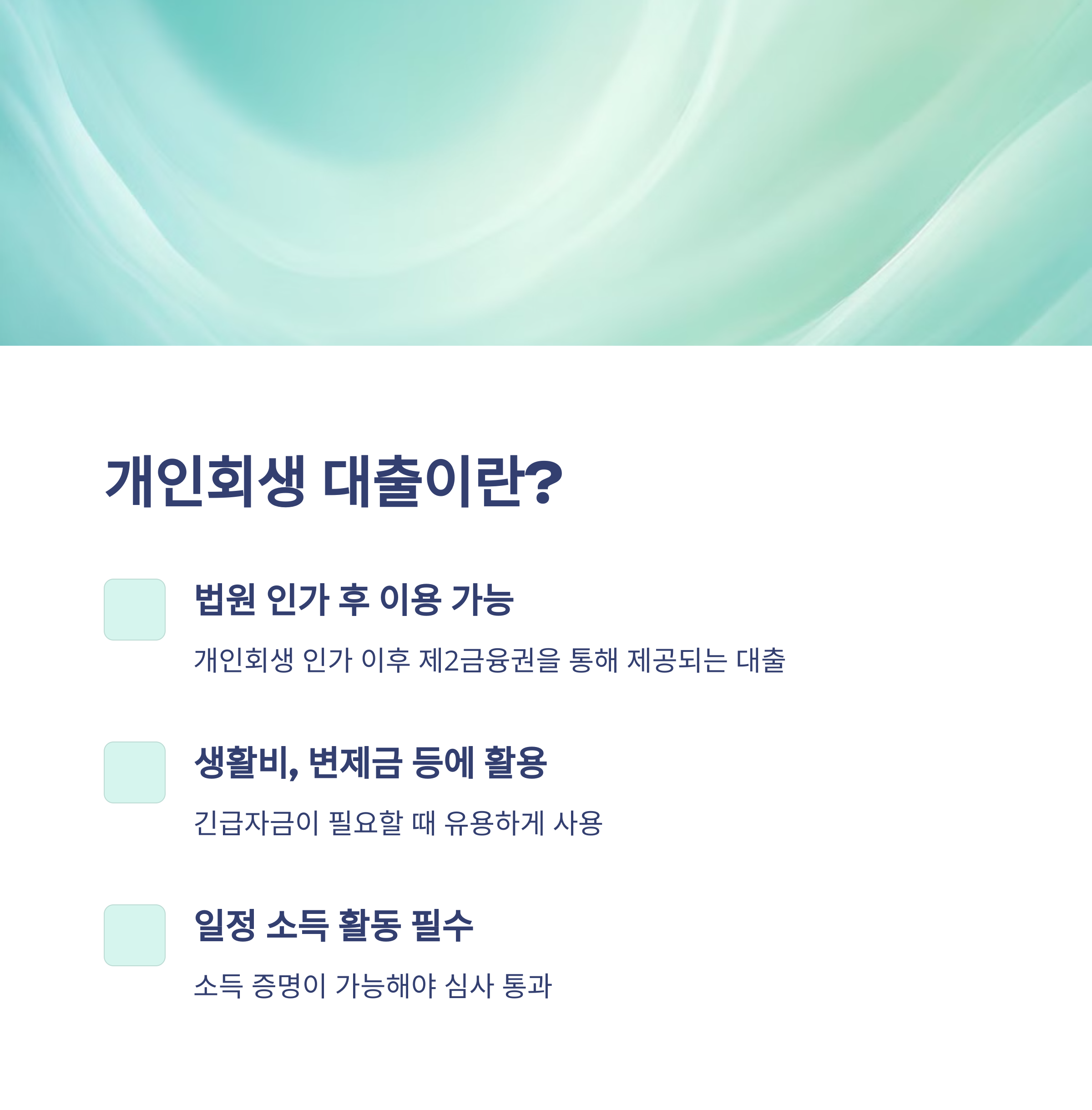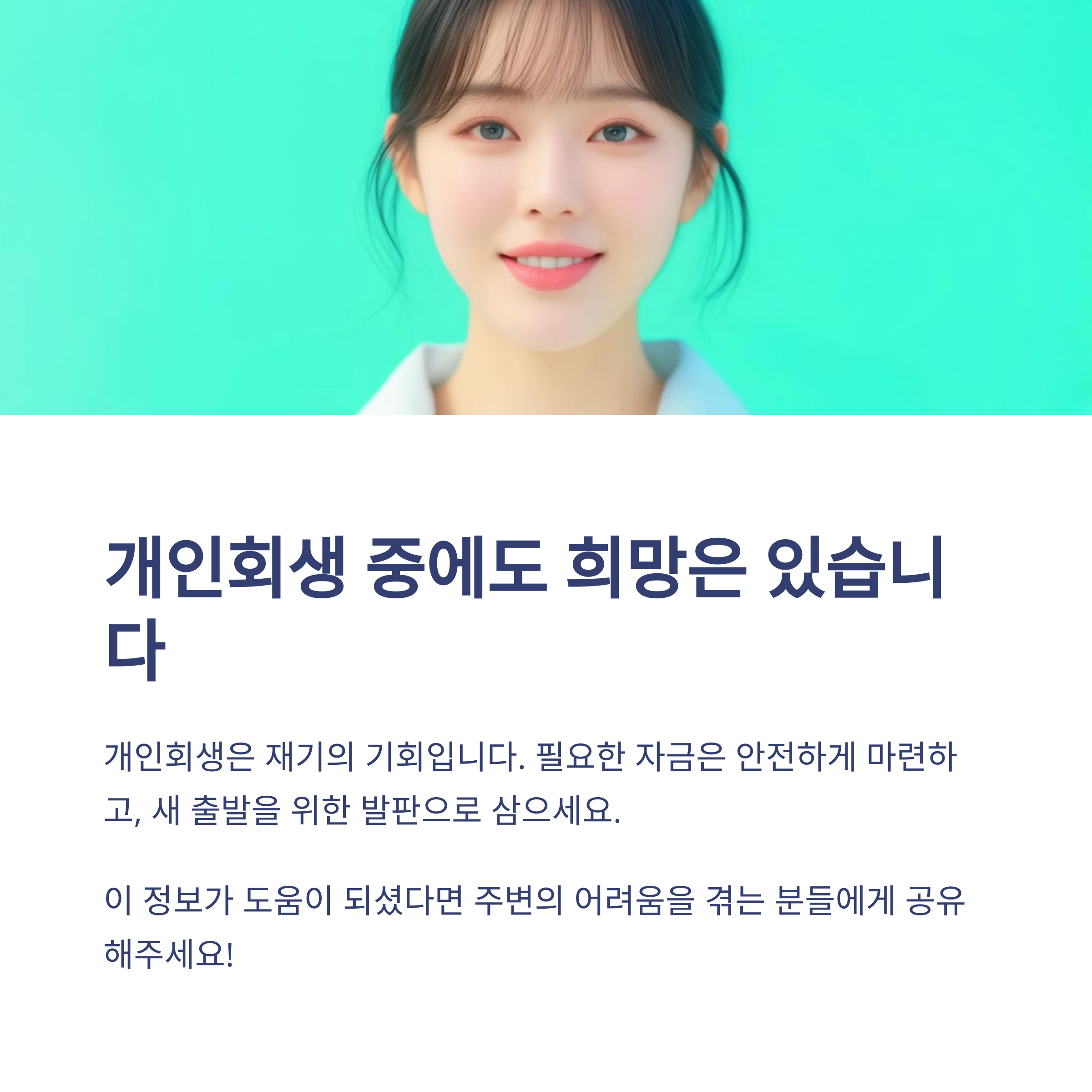 개인회생은 재기의 기회입니다. 대출은 임시적 수단으로 사용하되, 상환 계획을 철저히 세우는 것이 가장 중요합니다.