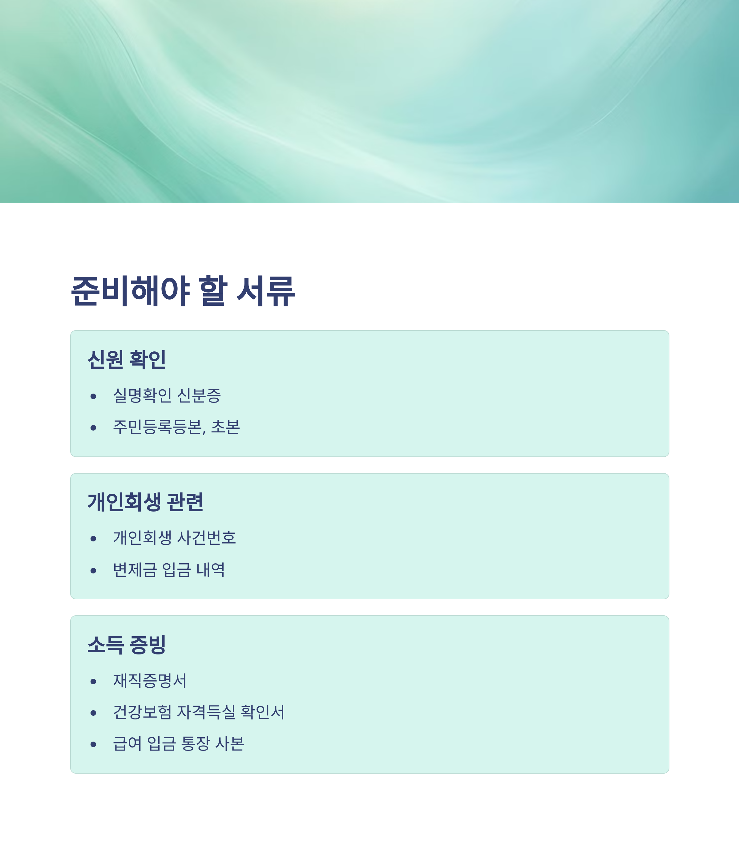 💡 상담 후 개인별로 추가 서류가 요청될 수 있습니다.