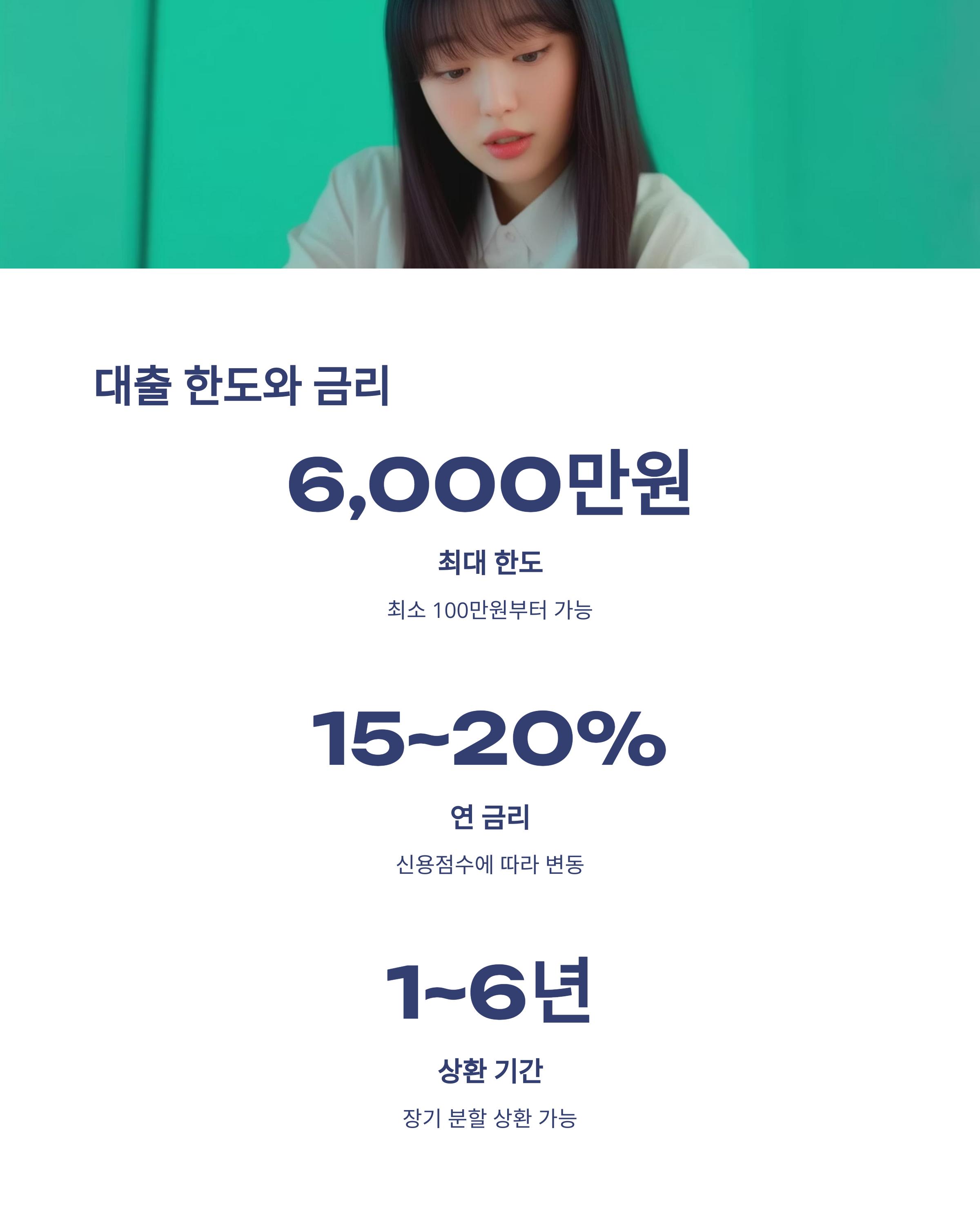 📌 금리: 연 15% ~ 20% (신용점수에 따라 변동)