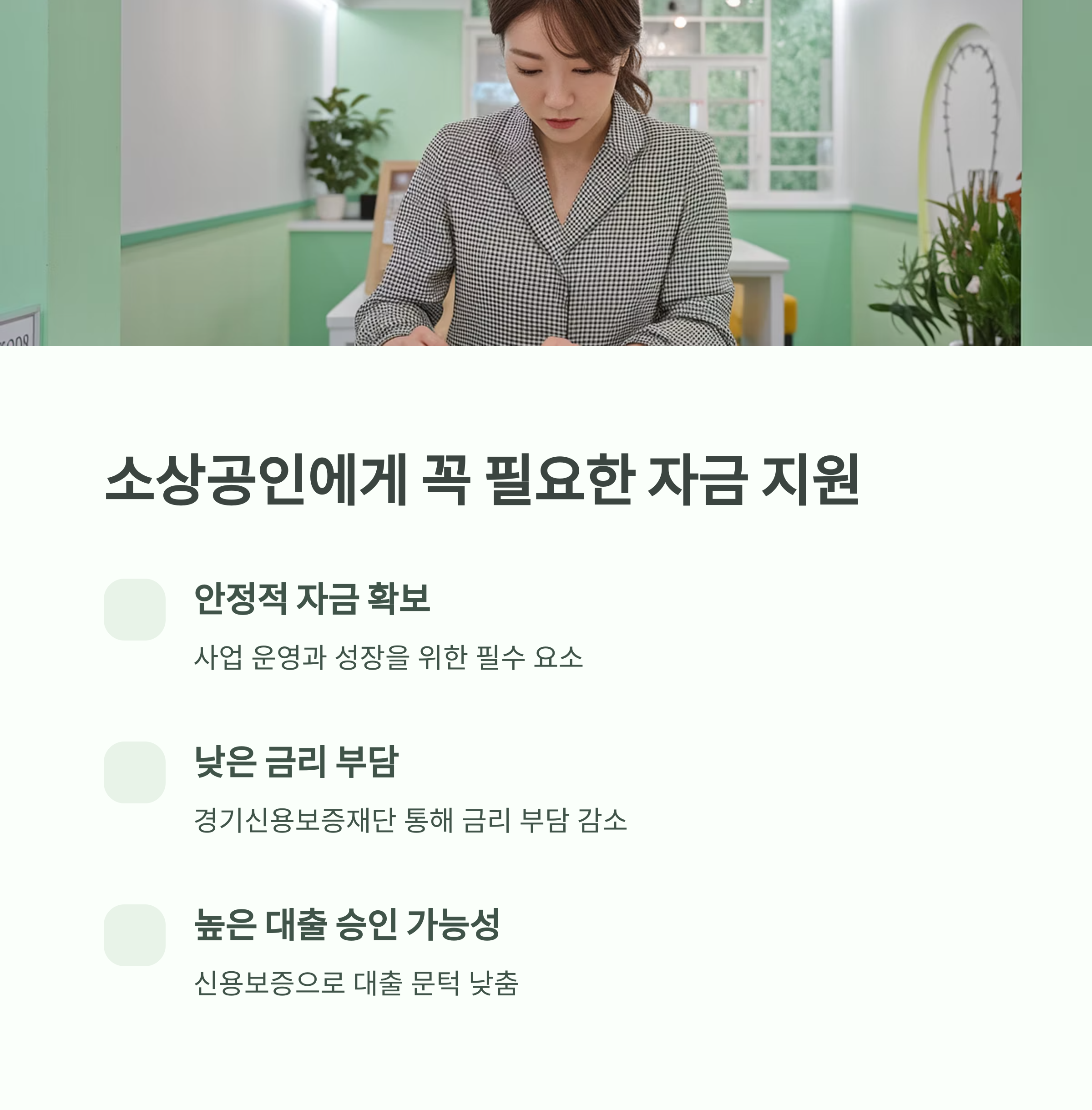 소상공인의 사업 운영과 성장을 위해 가장 필요한 것은 무엇일까요? 바로 안정적인 자금 확보입니다. 경기지역 소상공인이라면, 경기신용보증재단의 지원 프로그램을 통해 금리 부담은 낮추고, 대출 승인 가능성은 높이는 방법을 꼭 확인해보셔야 해요.
