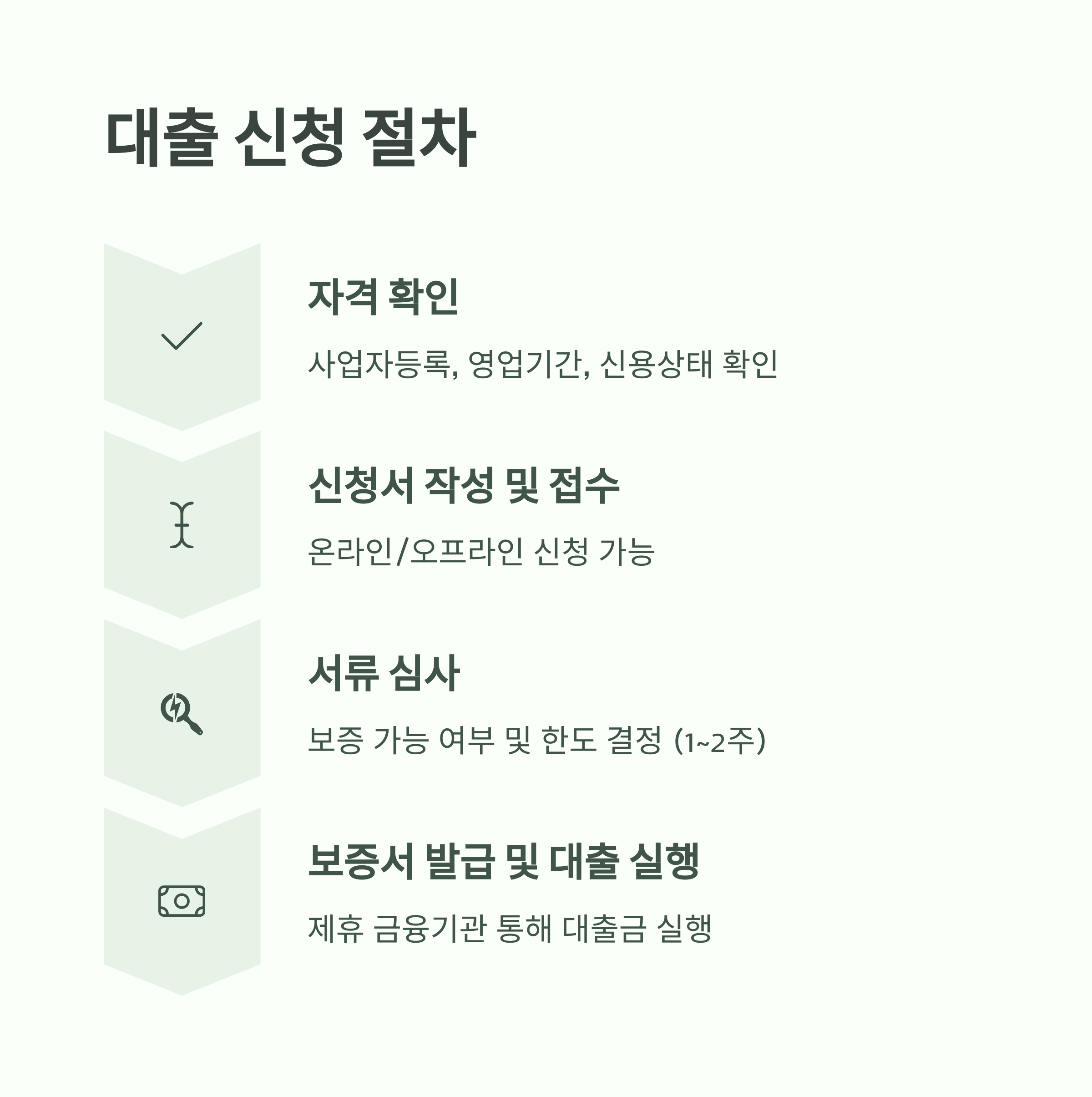 경기신용보증재단 대출은 크게 4단계 절차를 따릅니다.