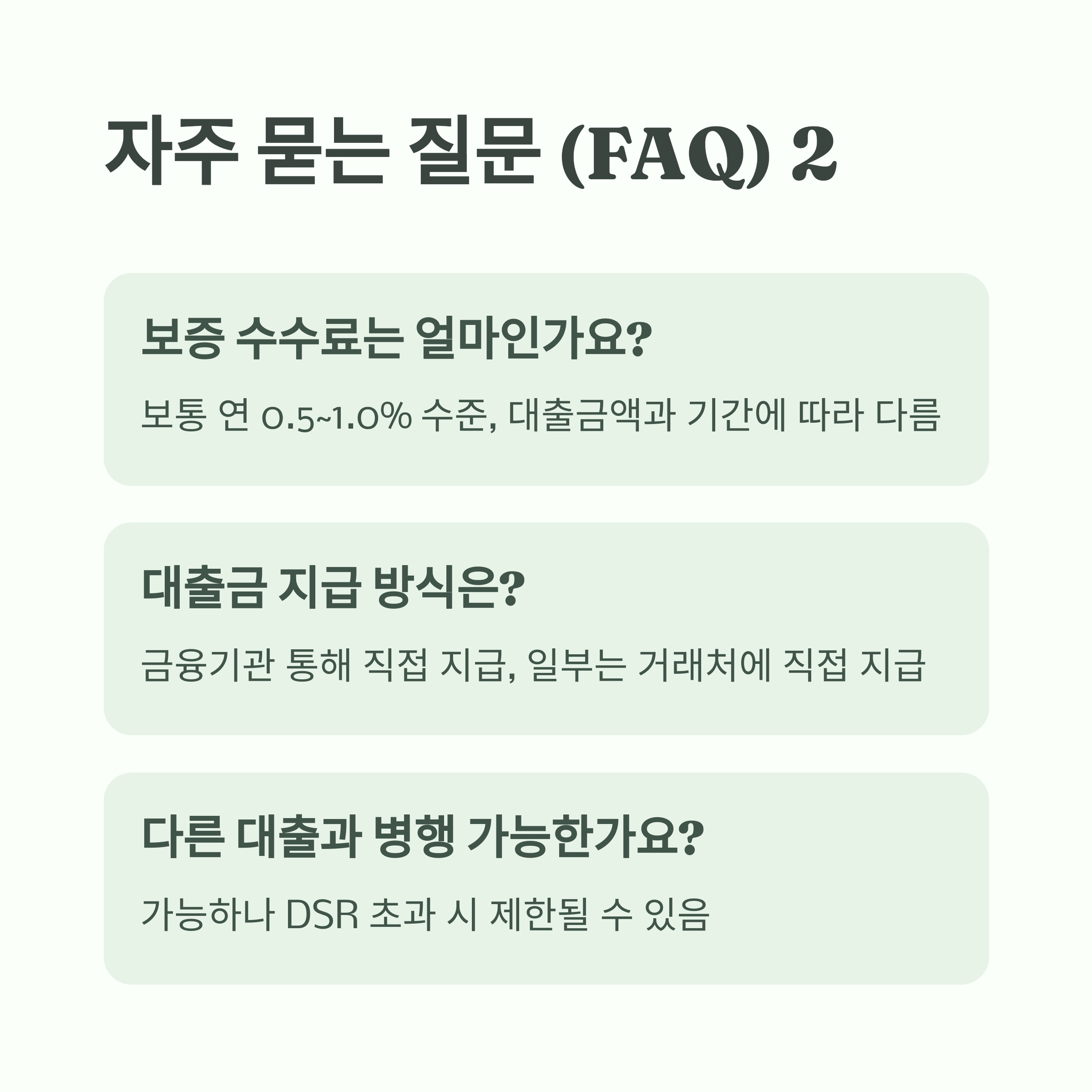 ✔ 보증서 발급 시 보증료 납부 필요 (보통 연 0.5%~1.0%)