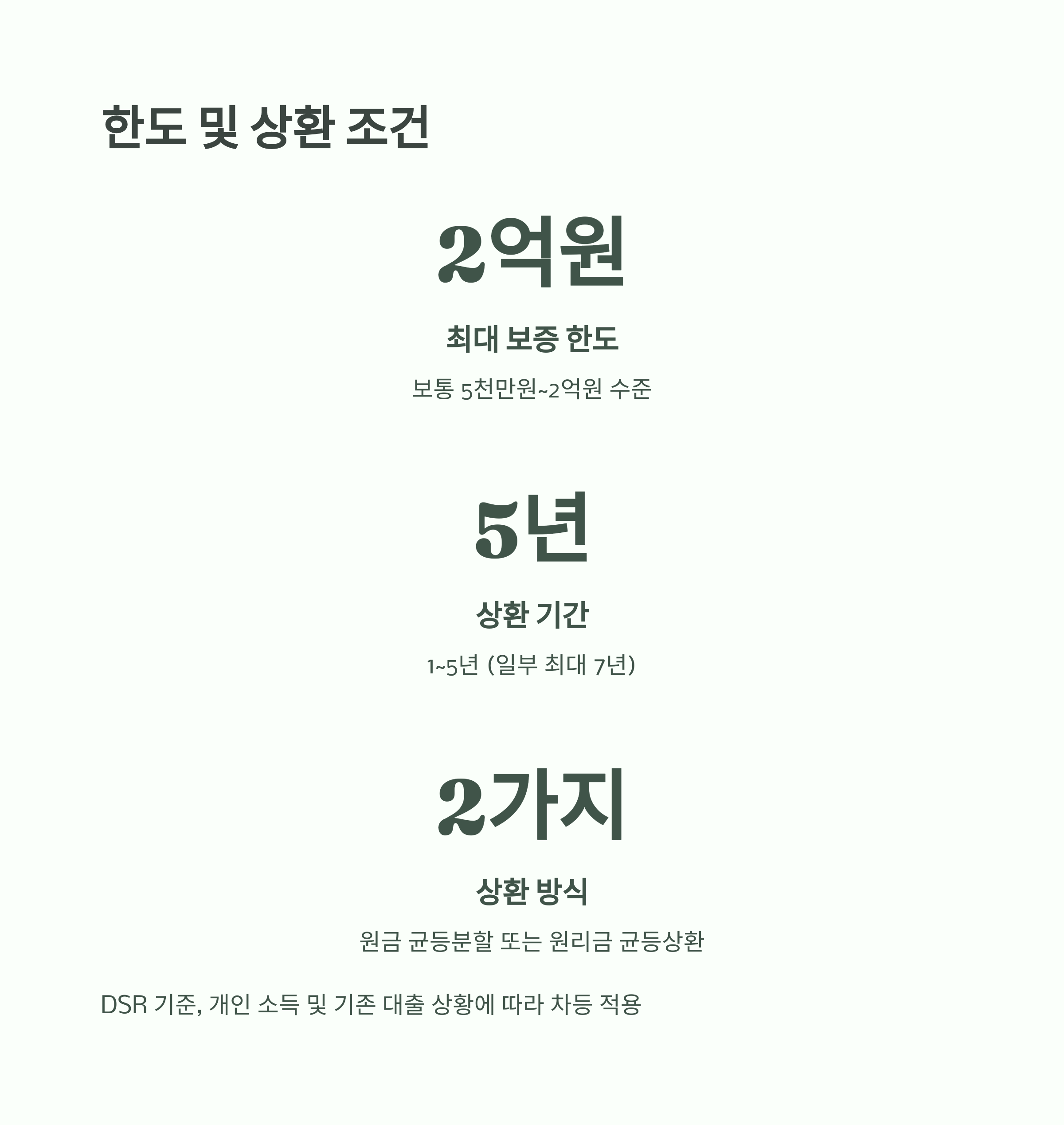 - 최대 보증 한도: 보통 5천만원 ~ 2억원 수준