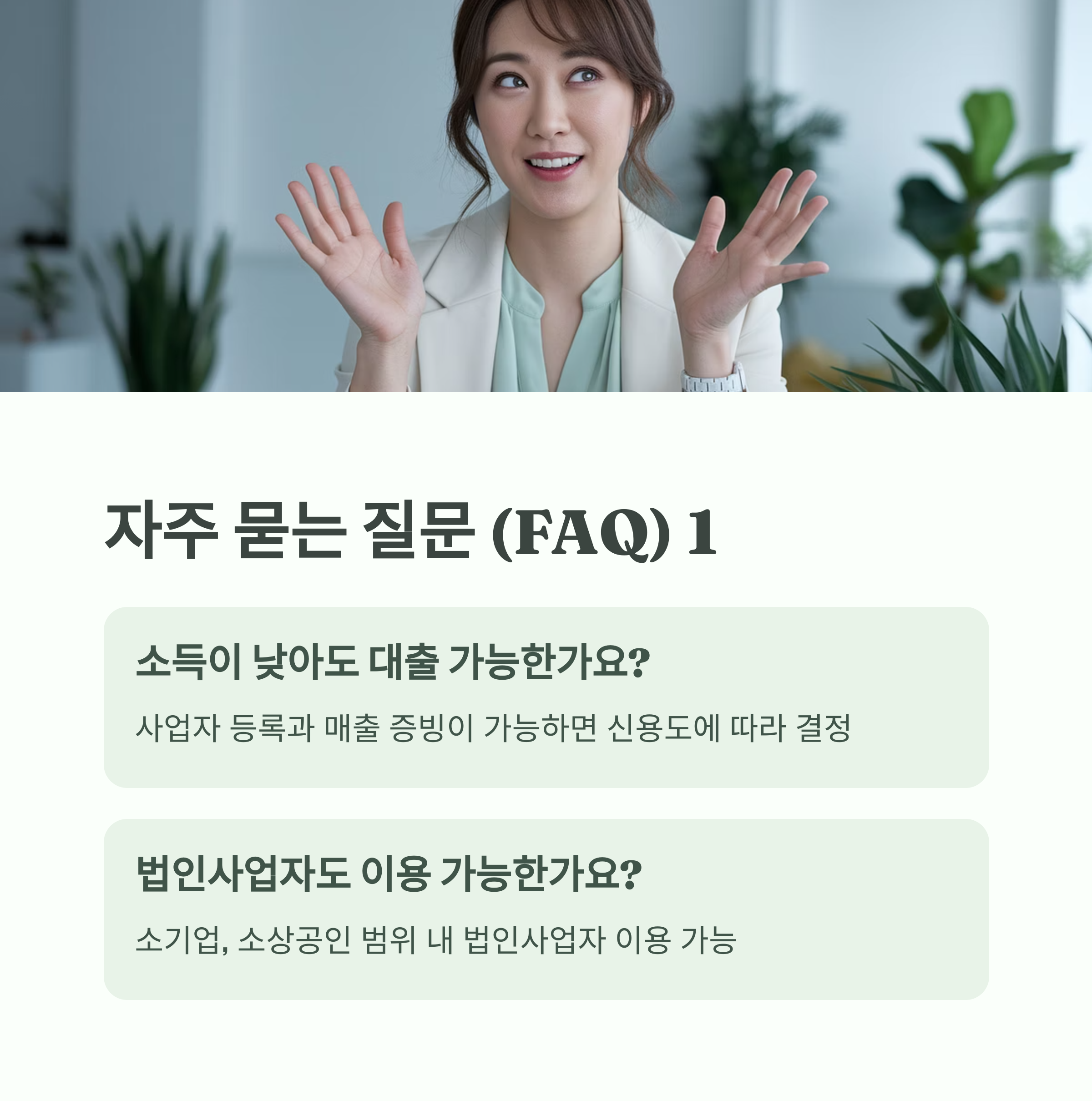A1. 사업자 등록이 되어 있고 매출 증빙이 가능하다면 일부 가능성이 있습니다. 단, 신용도에 따라 결정됩니다.