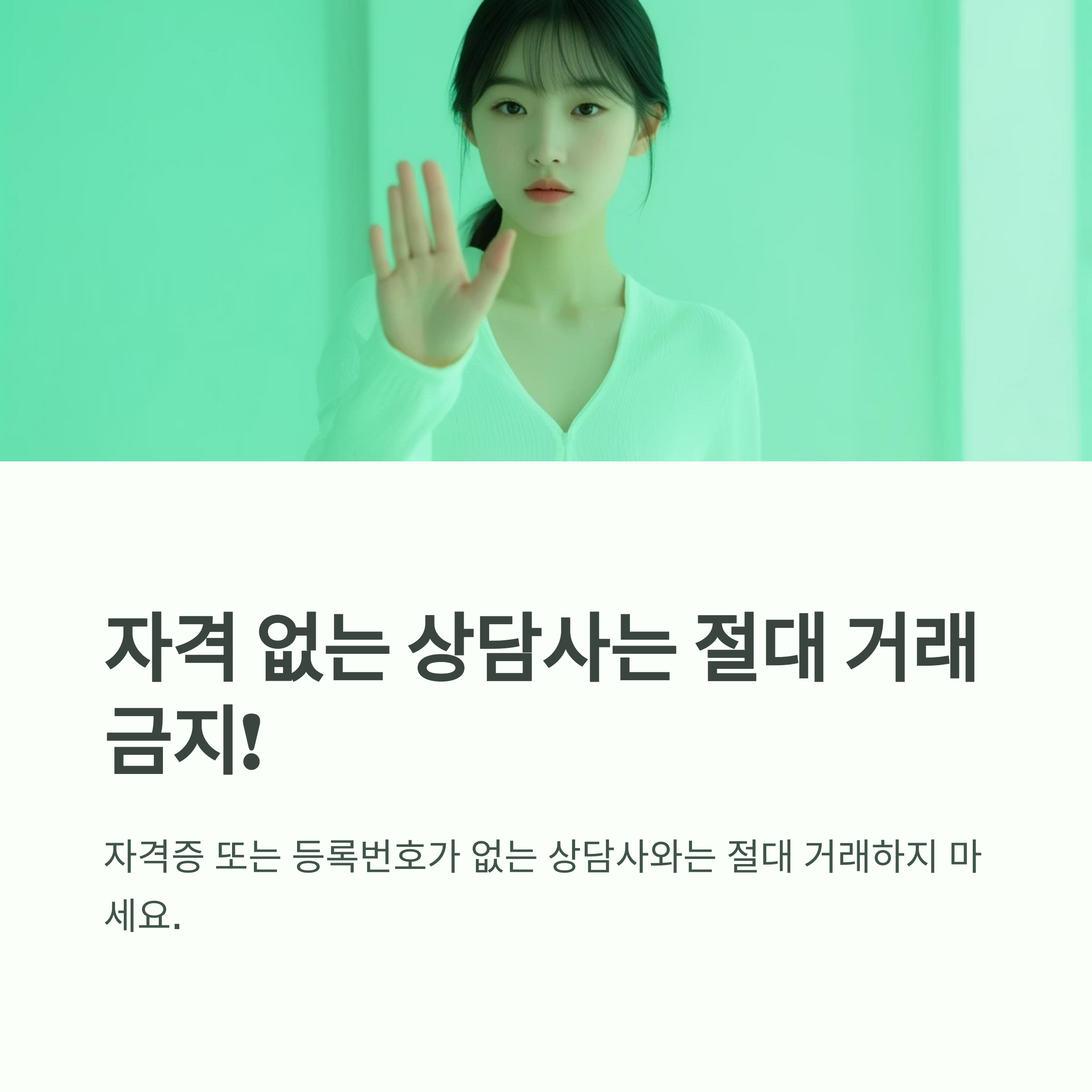 📌 자격증 또는 등록번호가 없는 상담사는 절대 거래하지 마세요.