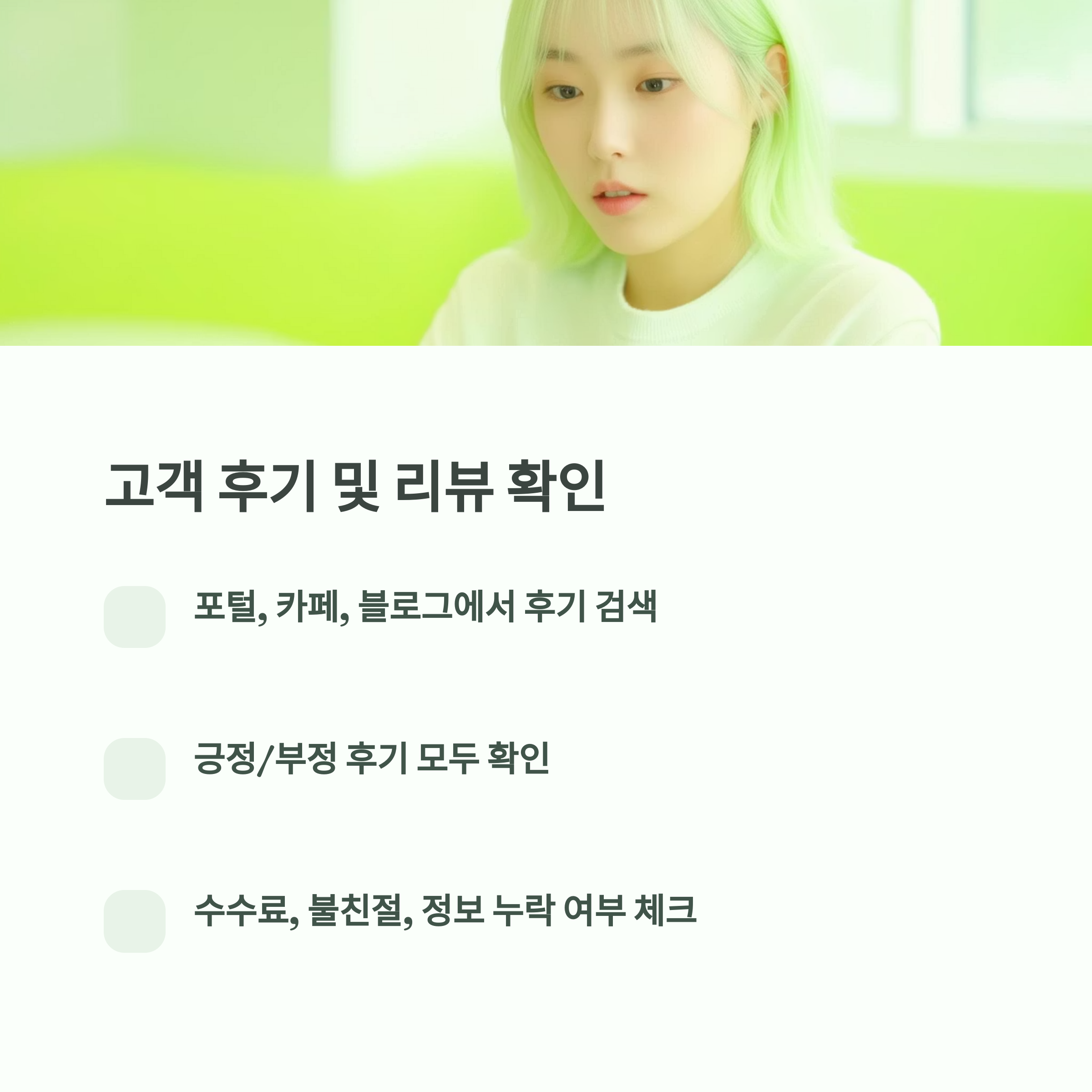 - 후기에서 자주 언급되는 수수료, 불친절, 정보 누락 여부 체크