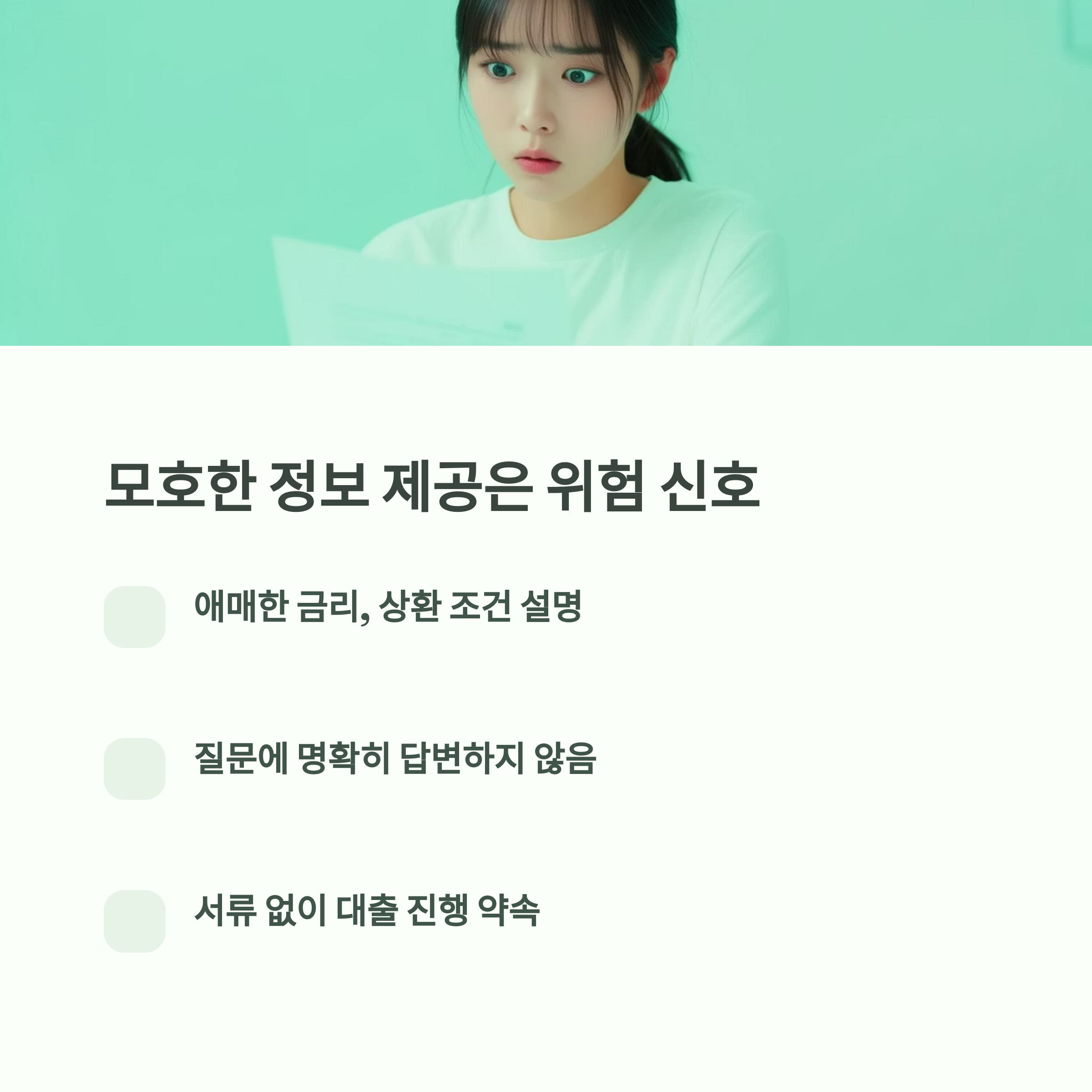 - 대출 금리, 상환 조건, 실행 절차에 대한 설명이 애매한 경우