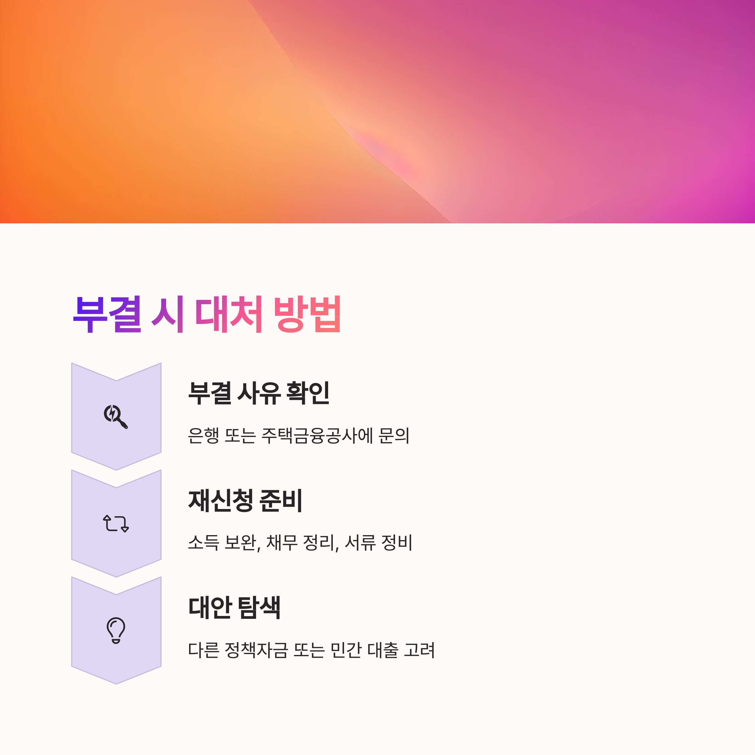 → 소득 보완, 채무 정리, 서류 정비 후 재도전 가능