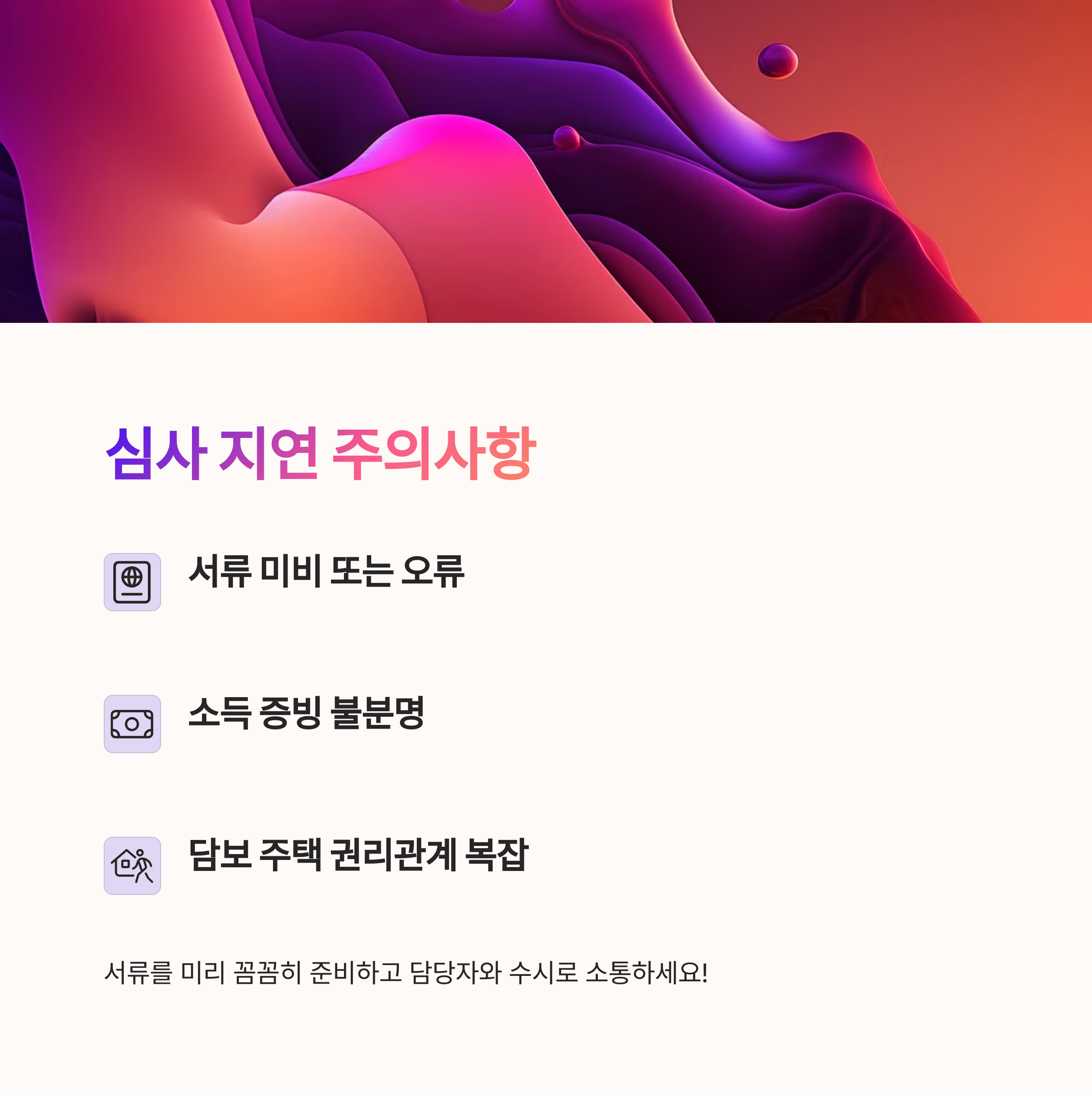 특히 아래 경우에는 심사 기간이 지연될 수 있으니 주의하세요: