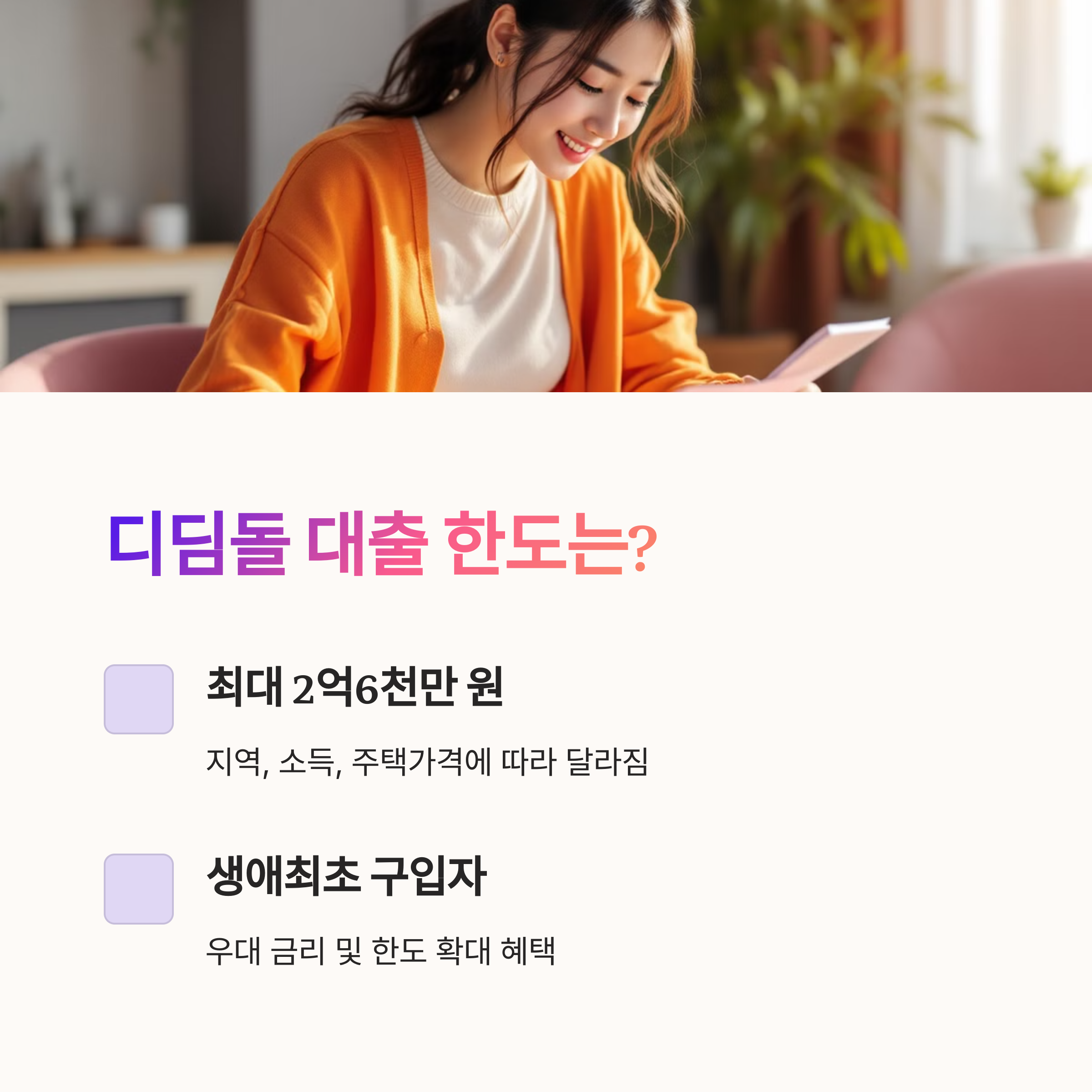 👉 참고로, 생애최초 구입자는 우대 금리 및 한도 확대 혜택을 받을 수 있어요!