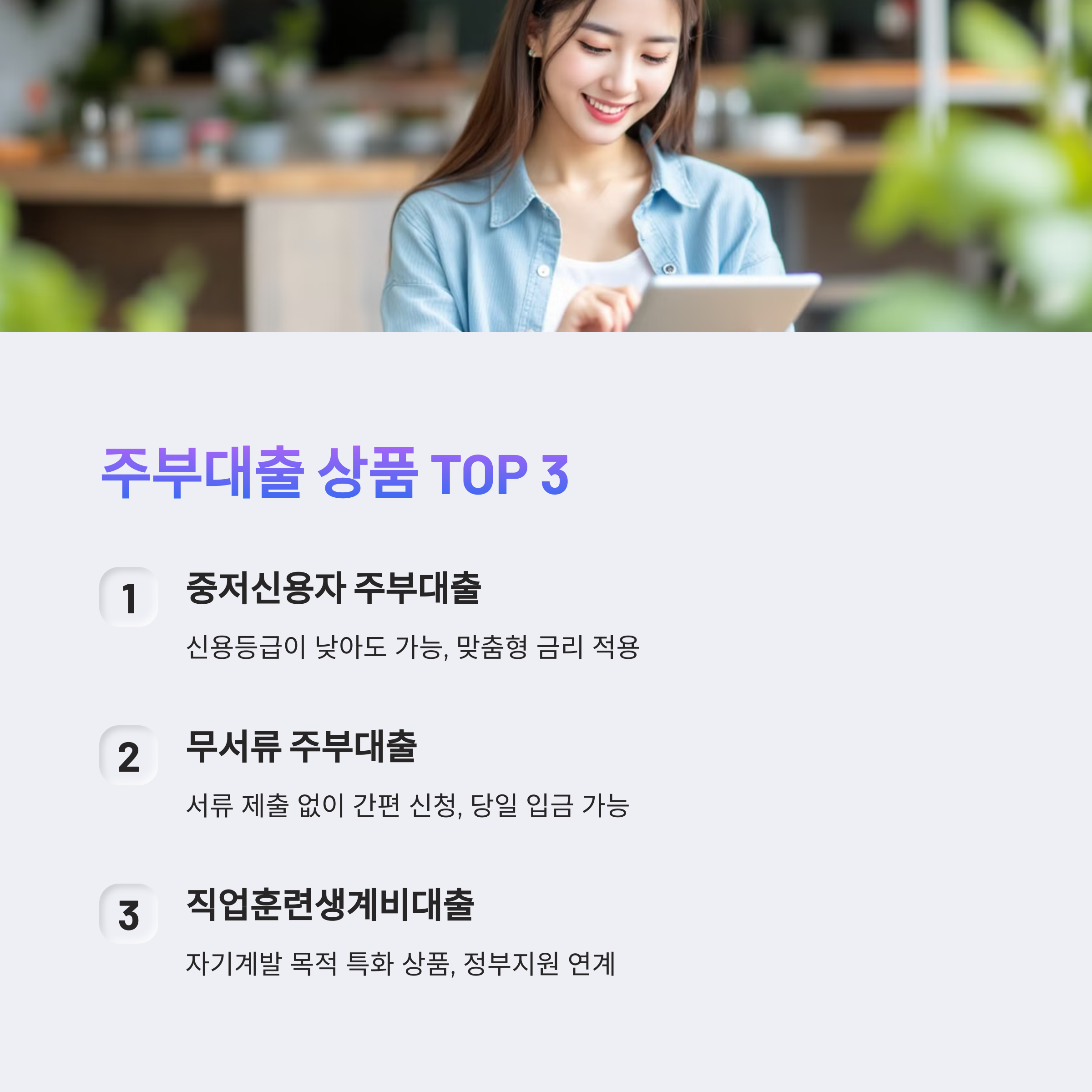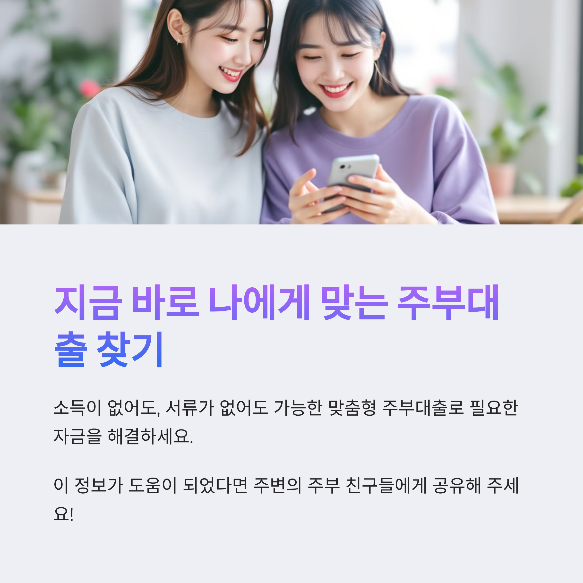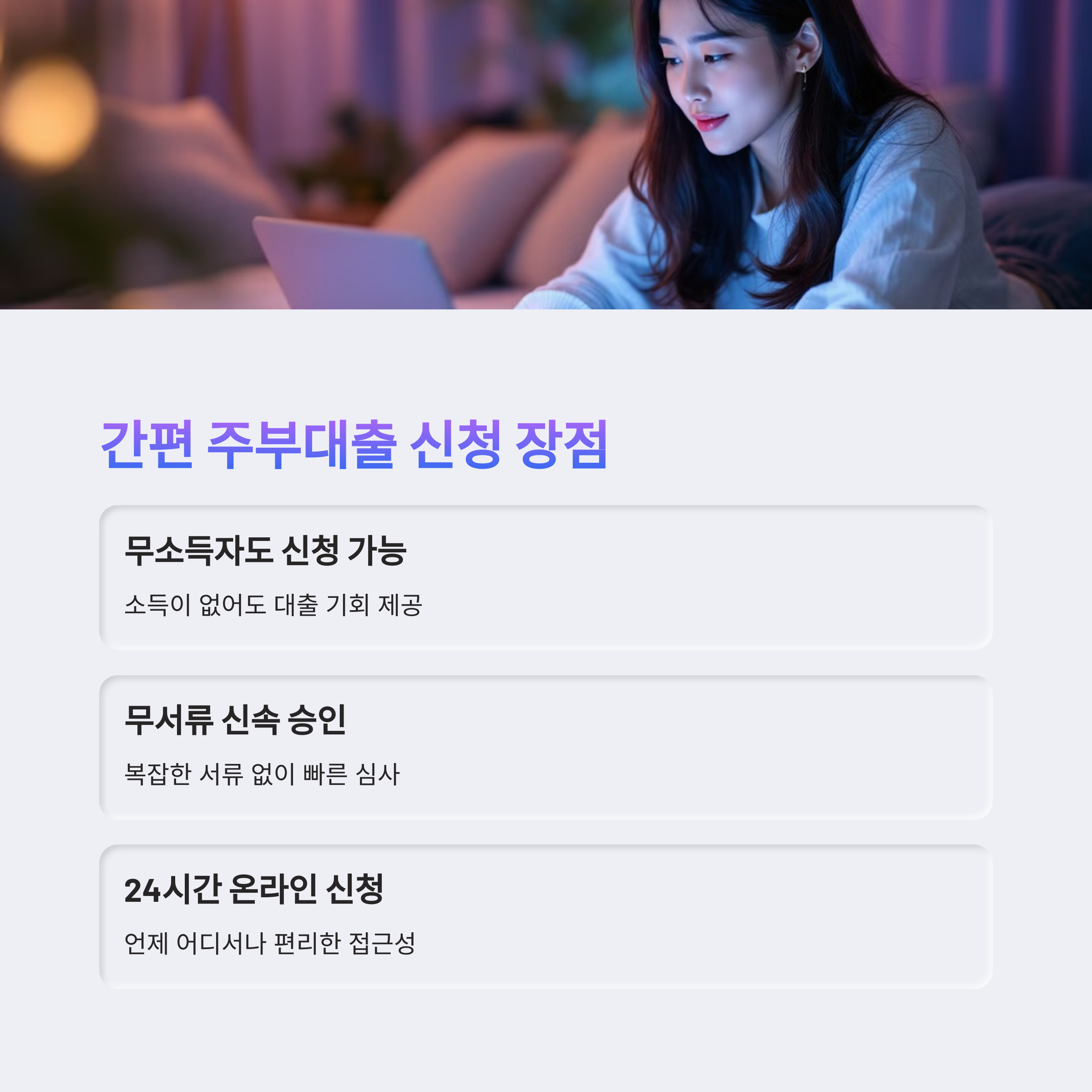 전업주부의 경우 소득증빙이 어려워 대출 승인이 쉽지 않습니다. 하지만 최근 금융기관에서는 주부를 위한 전용 대출 상품을 출시하며 대출 문턱을 낮추고 있습니다. 무서류로도 간편하게 신청할 수 있는 주부대출에 대해 자세히 알아보겠습니다.