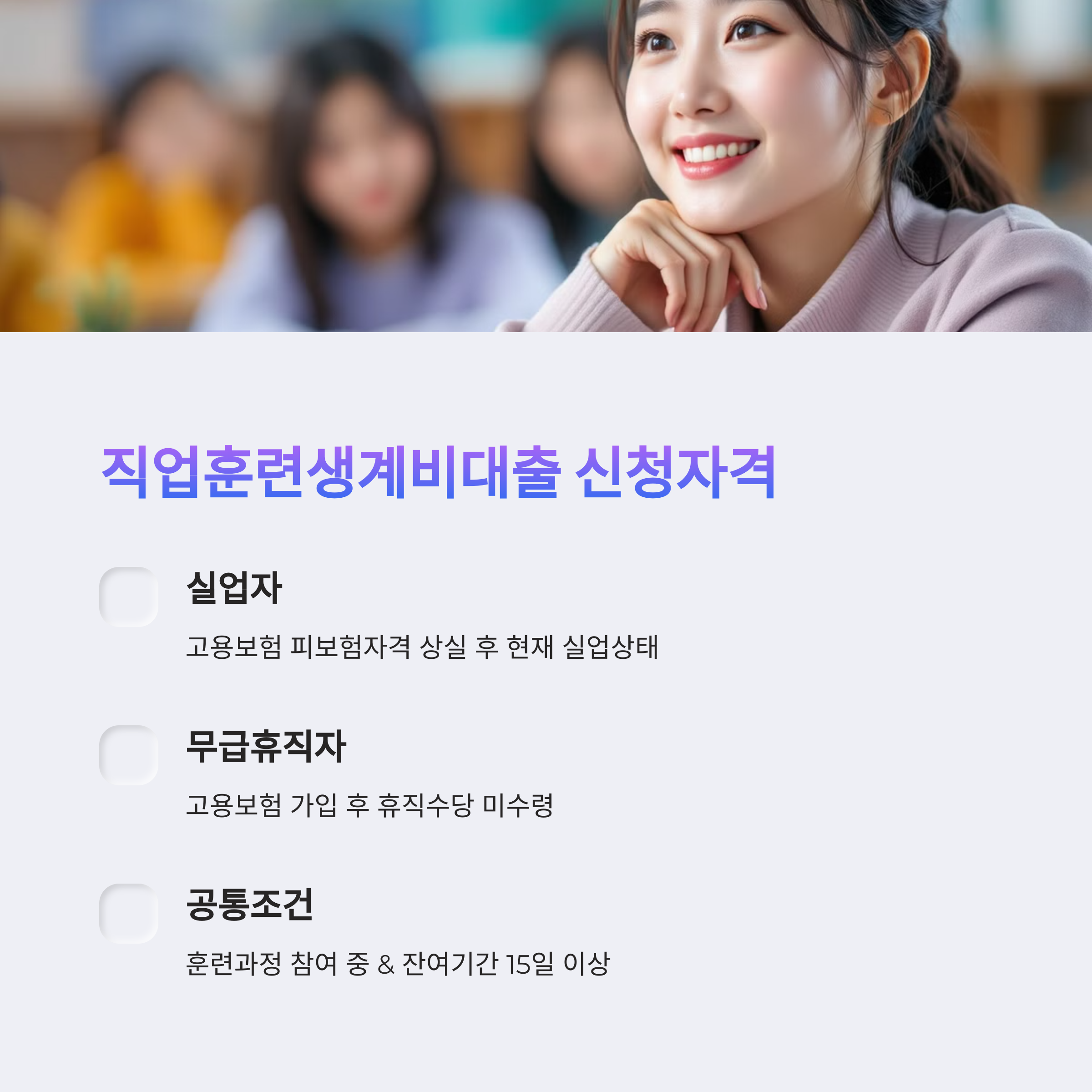 ✔ 공통조건: 훈련과정 참여 중 & 잔여기간 15일 이상