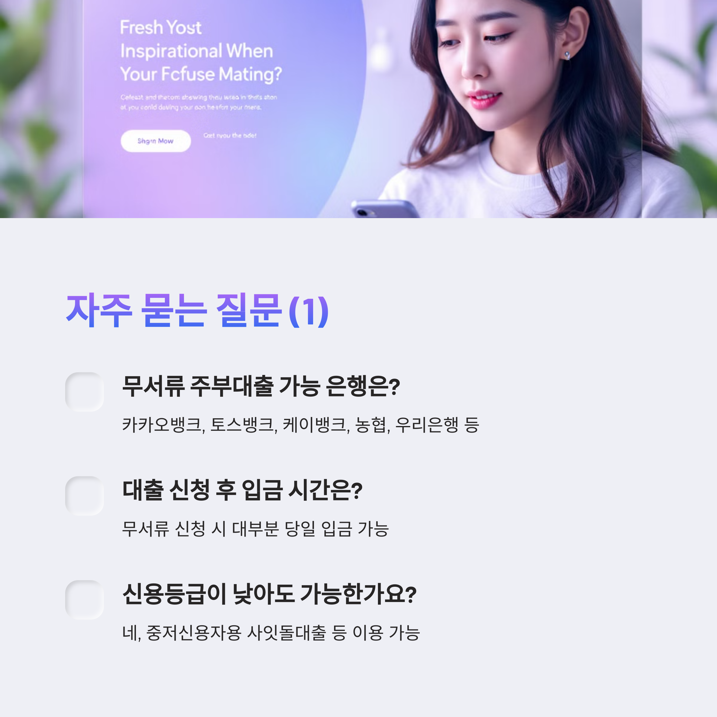 A1. 카카오뱅크, 토스뱅크, 케이뱅크 등 인터넷 은행과 일부 시중은행(농협, 우리은행)에서 무서류 대출이 가능합니다.