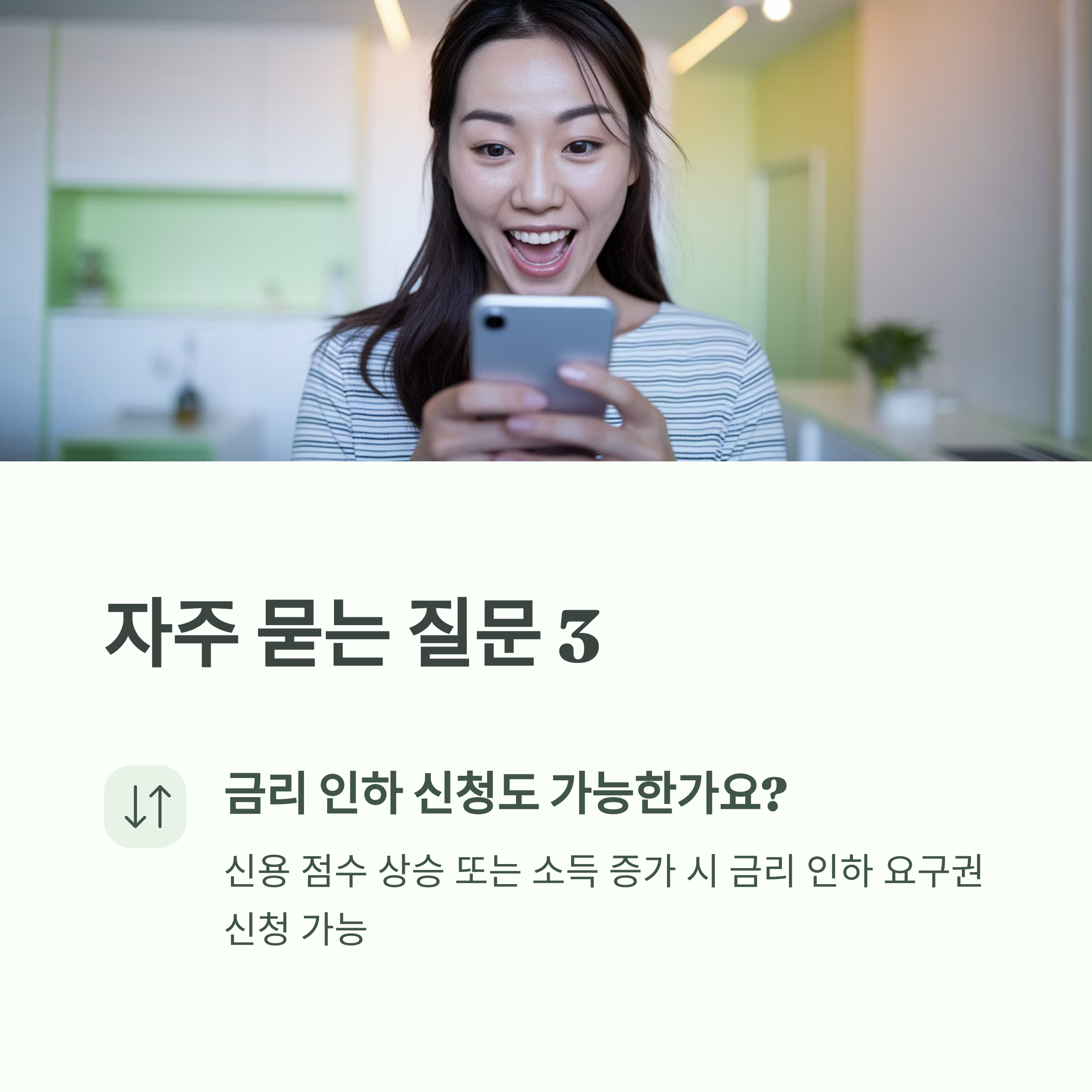 A5. 신용 점수 상승 또는 소득 증가 시 금리 인하 요구권 신청이 가능합니다.