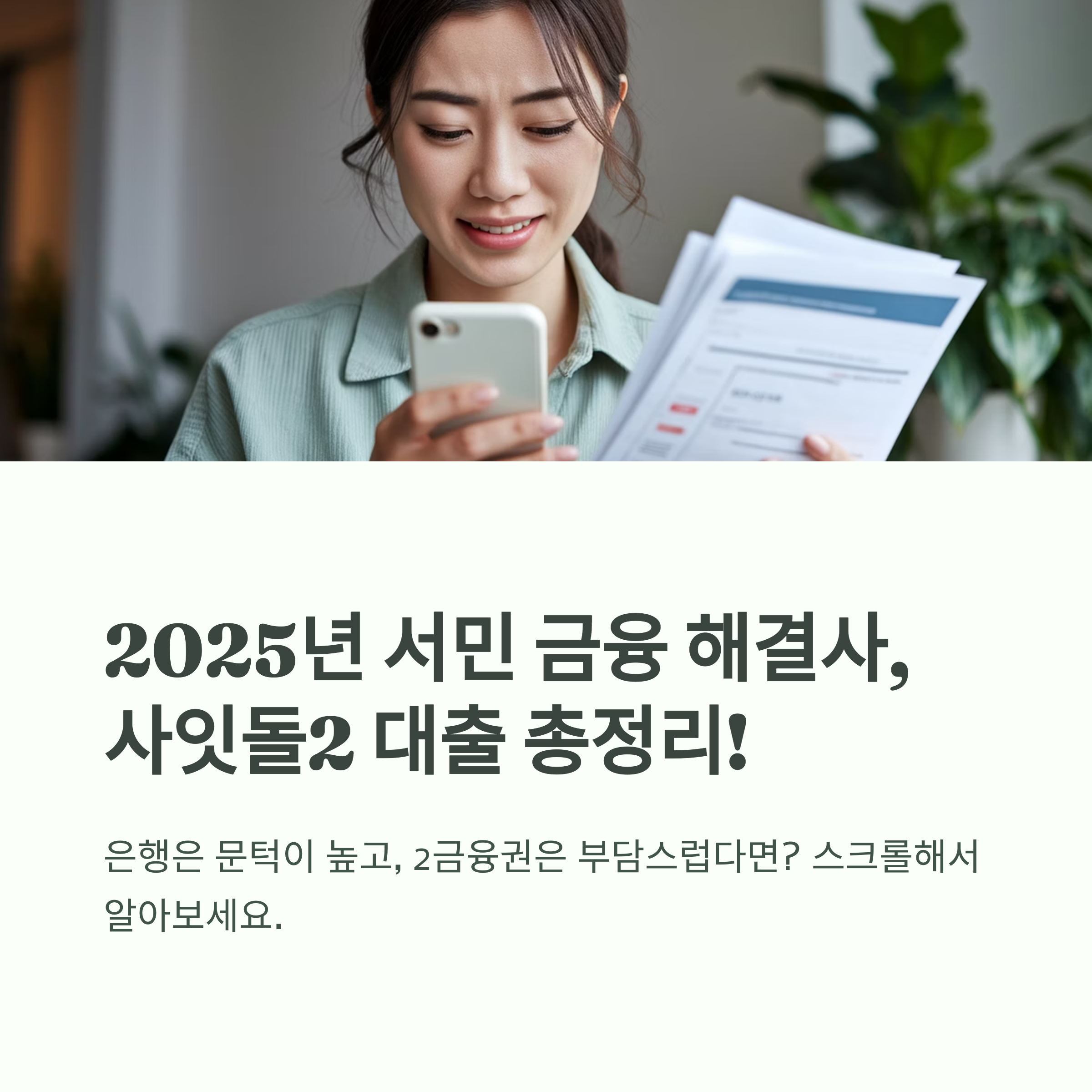 2025년, 금융시장 변화 속에서 서민들에게 실질적인 도움을 줄 수 있는 중금리 대출 상품이 주목받고 있습니다. 그 중 대표적인 것이 바로 "사잇돌2 대출"입니다. 은행권 대출은 문턱이 높고, 2금융권 고금리는 부담스러웠던 분들에게 현실적인 대안이 될 수 있죠. 이번 글에서는 사잇돌2 대출의 자격 요건부터 금리, 한도, 신청 방법, 그리고 대출이 어려운 경우의 대처 방법까지 자세히 안내드리겠습니다.