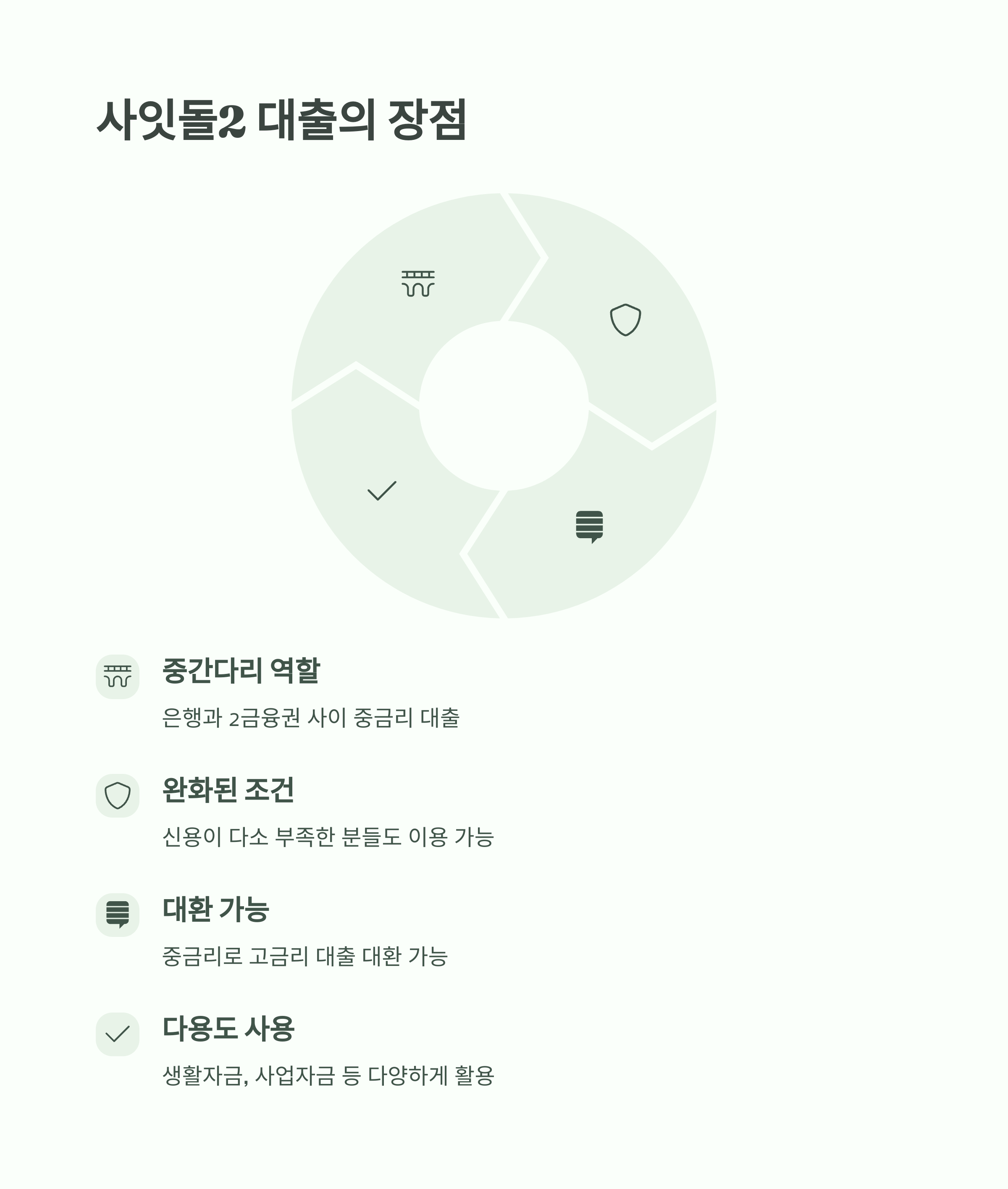 결론: 은행 대출이 어려운 분들에게 적합한 중간다리 대출 상품입니다.