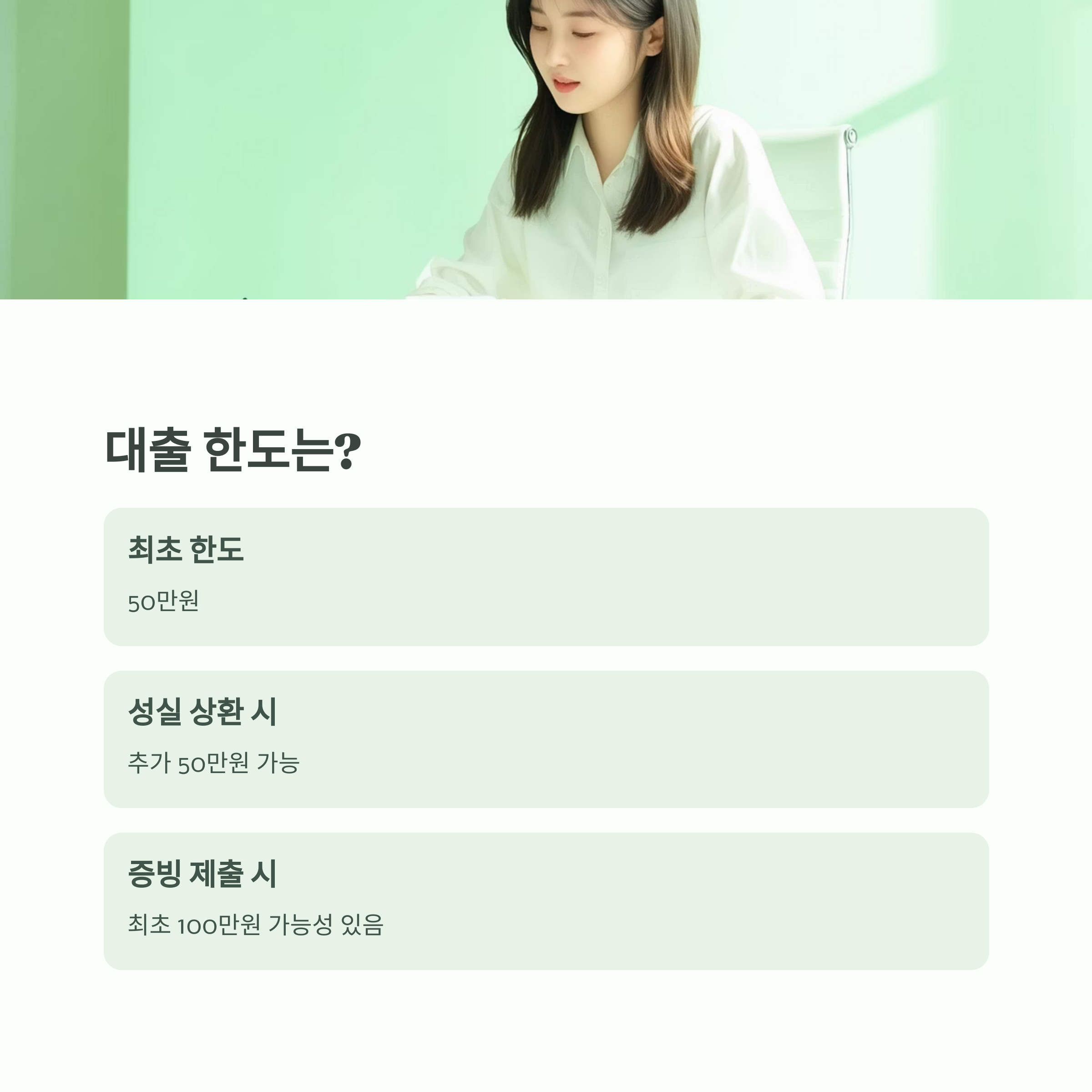 ✅ 한도: 최대 100만 원 (초기 50만 원 → 성실 상환 시 추가 50만 원)