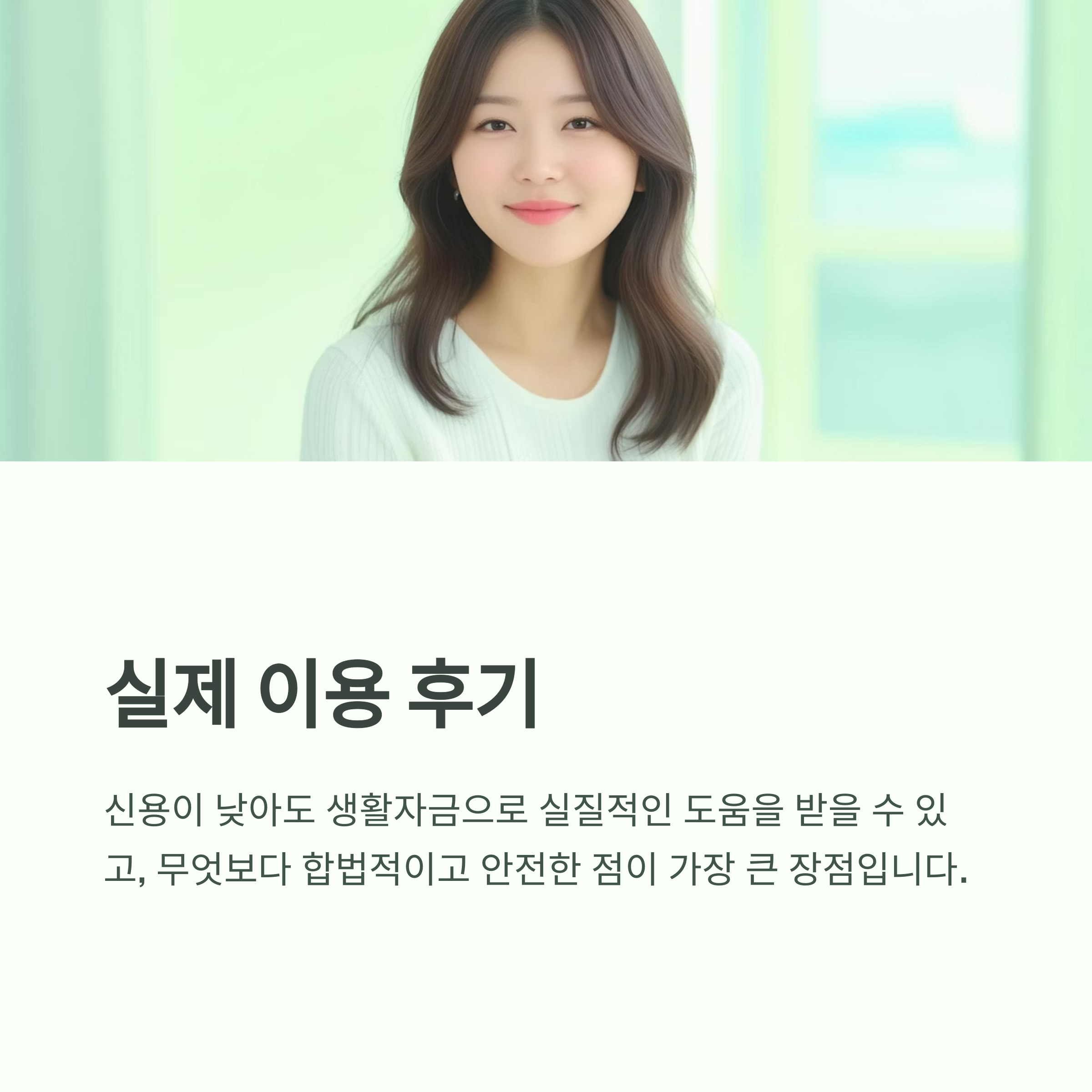 한 번에 수백만 원은 아니지만, 생활자금으로 실질적인 도움을 받을 수 있고, 무엇보다 합법적이고 안전하다는 점이 가장 큰 장점입니다.