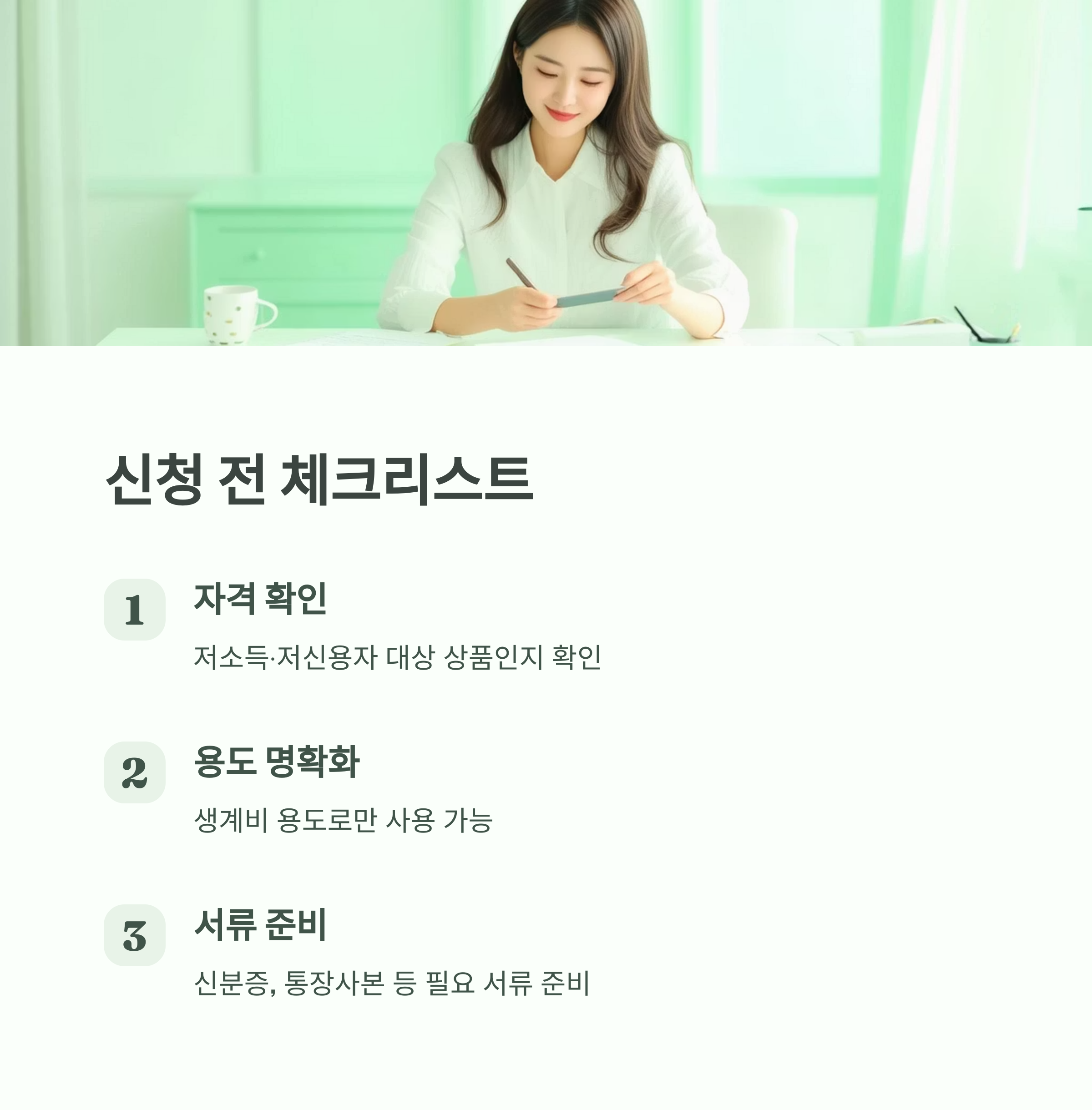 기존의 대출처럼 까다로운 심사가 아닌, 긴급하게 생계 자금이 필요한 저소득·저신용자를 위한 실질적인 제도예요.