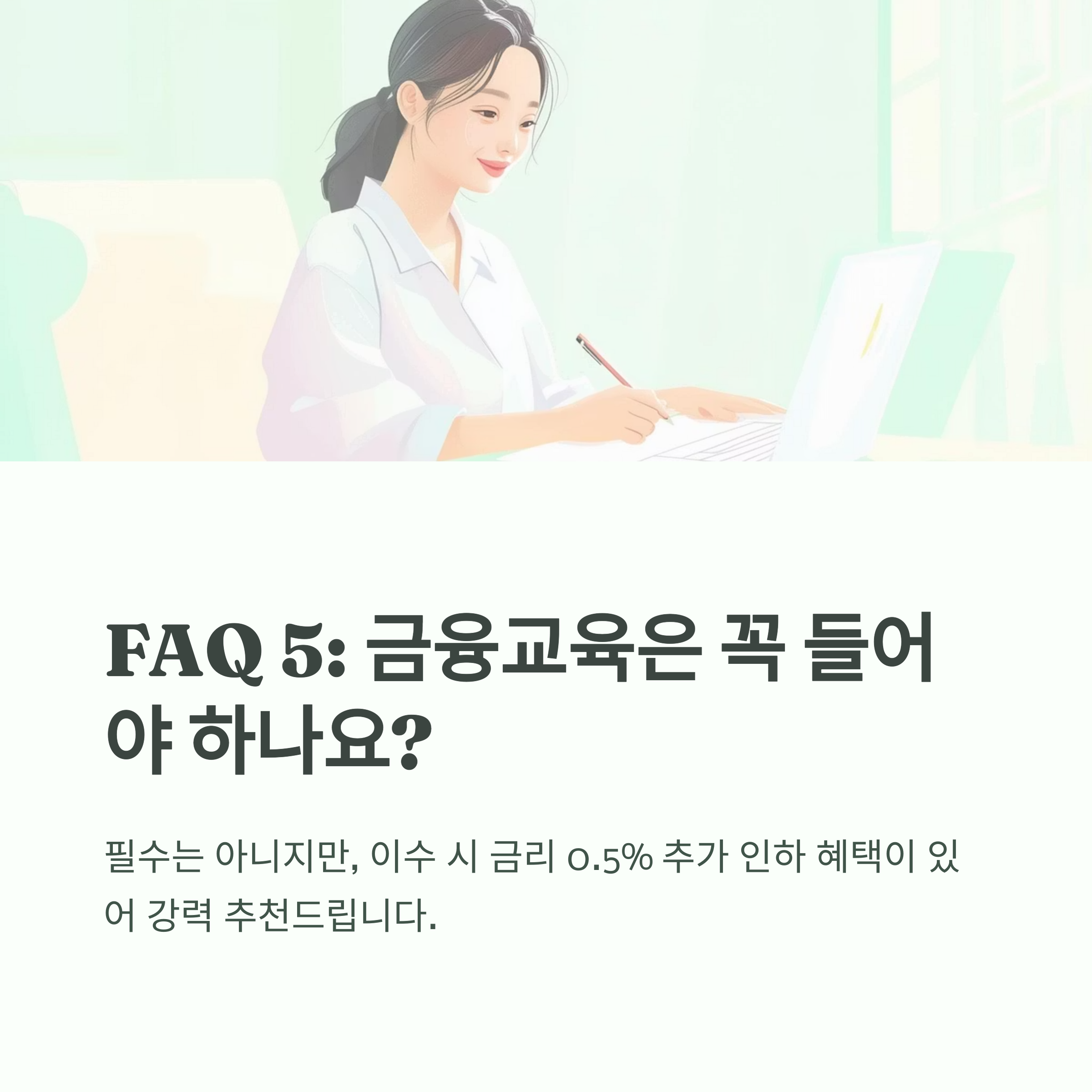 A5. 필수는 아니지만, 이수 시 금리 0.5% 추가 인하 혜택이 주어지니 강력 추천드립니다.