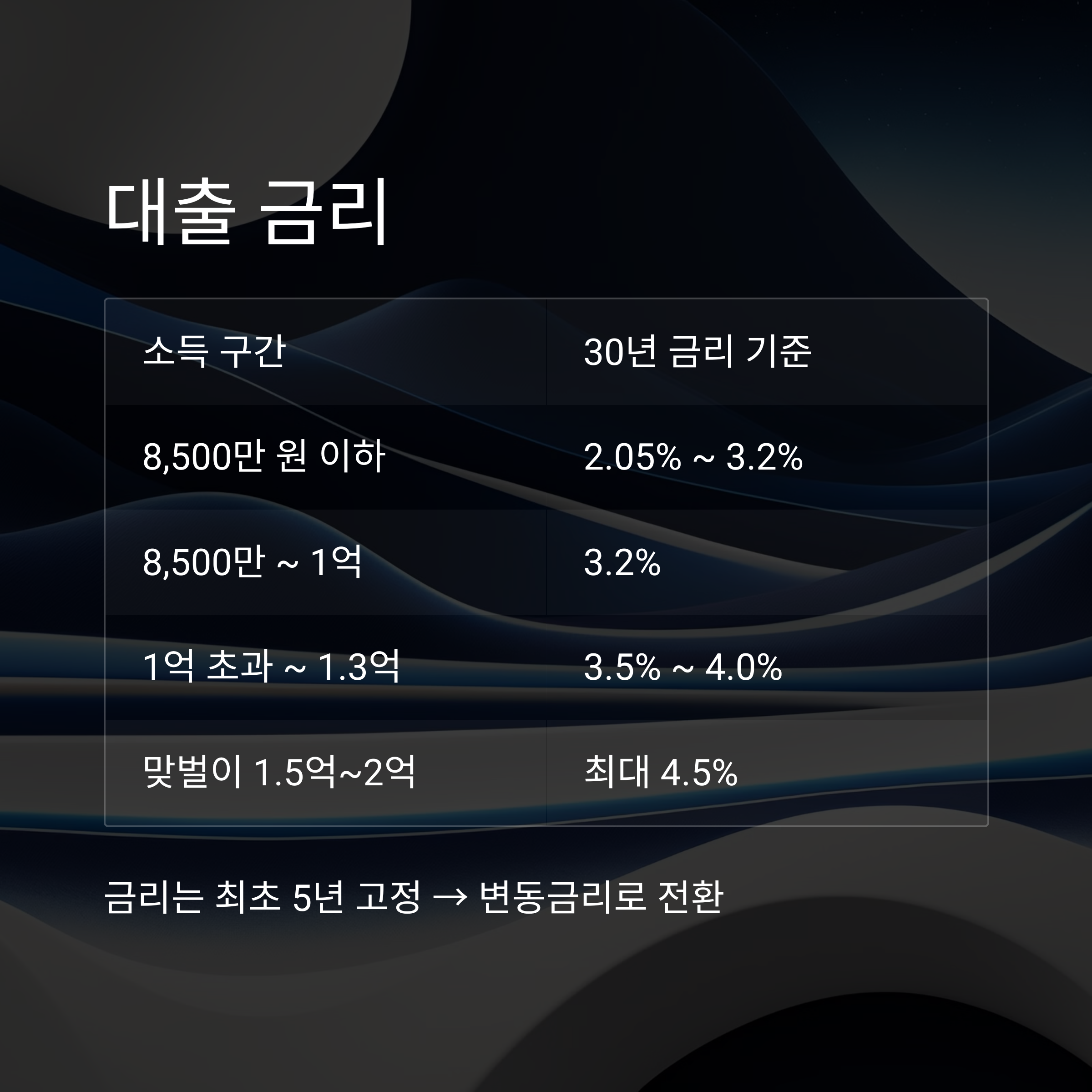 📌 금리는 최초 5년 고정 → 변동금리로 전환