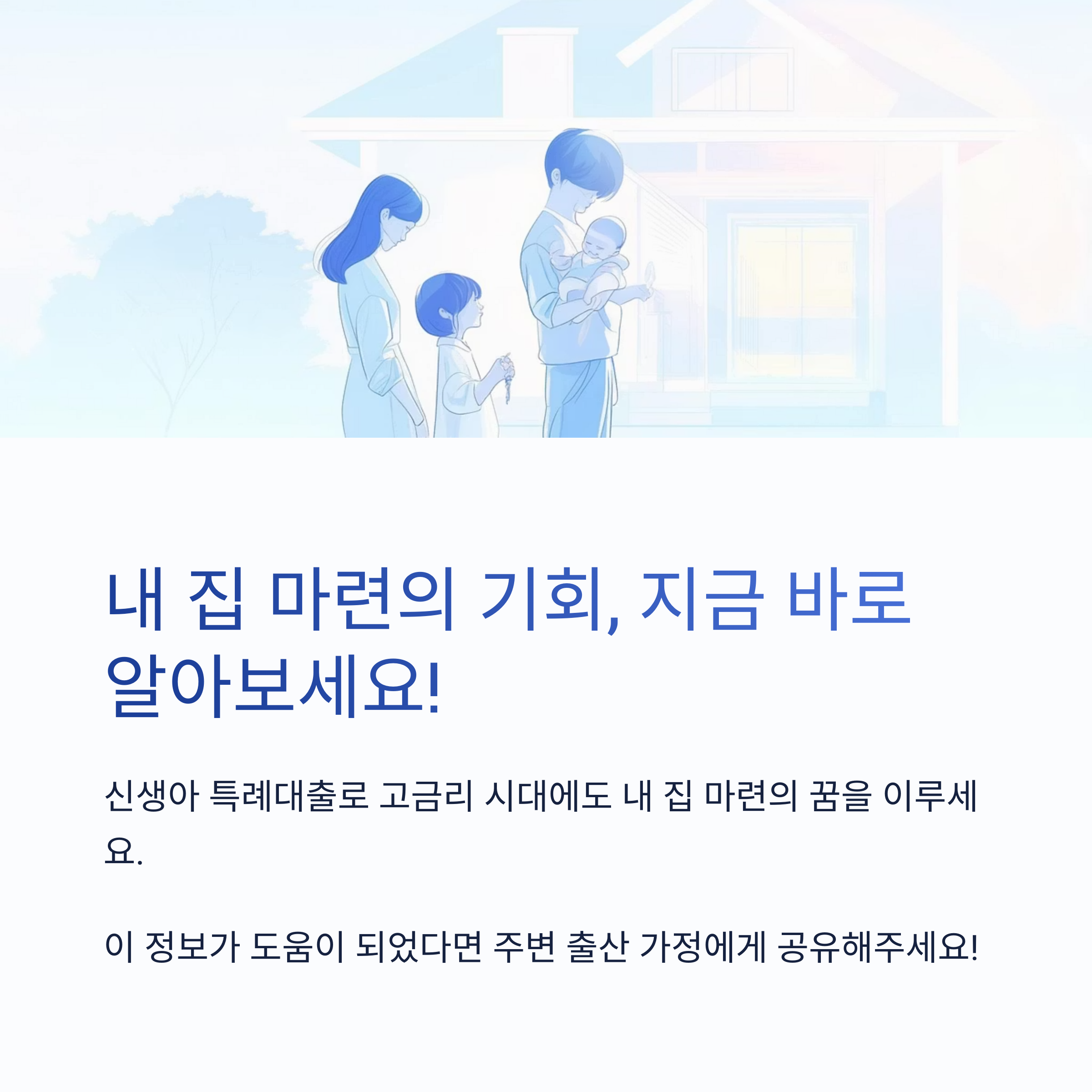 조건이 맞는다면 지금 바로 알아보세요. 내 집 마련의 가장 현실적인 방법, 신생아 특례 대출이 될 수 있습니다!