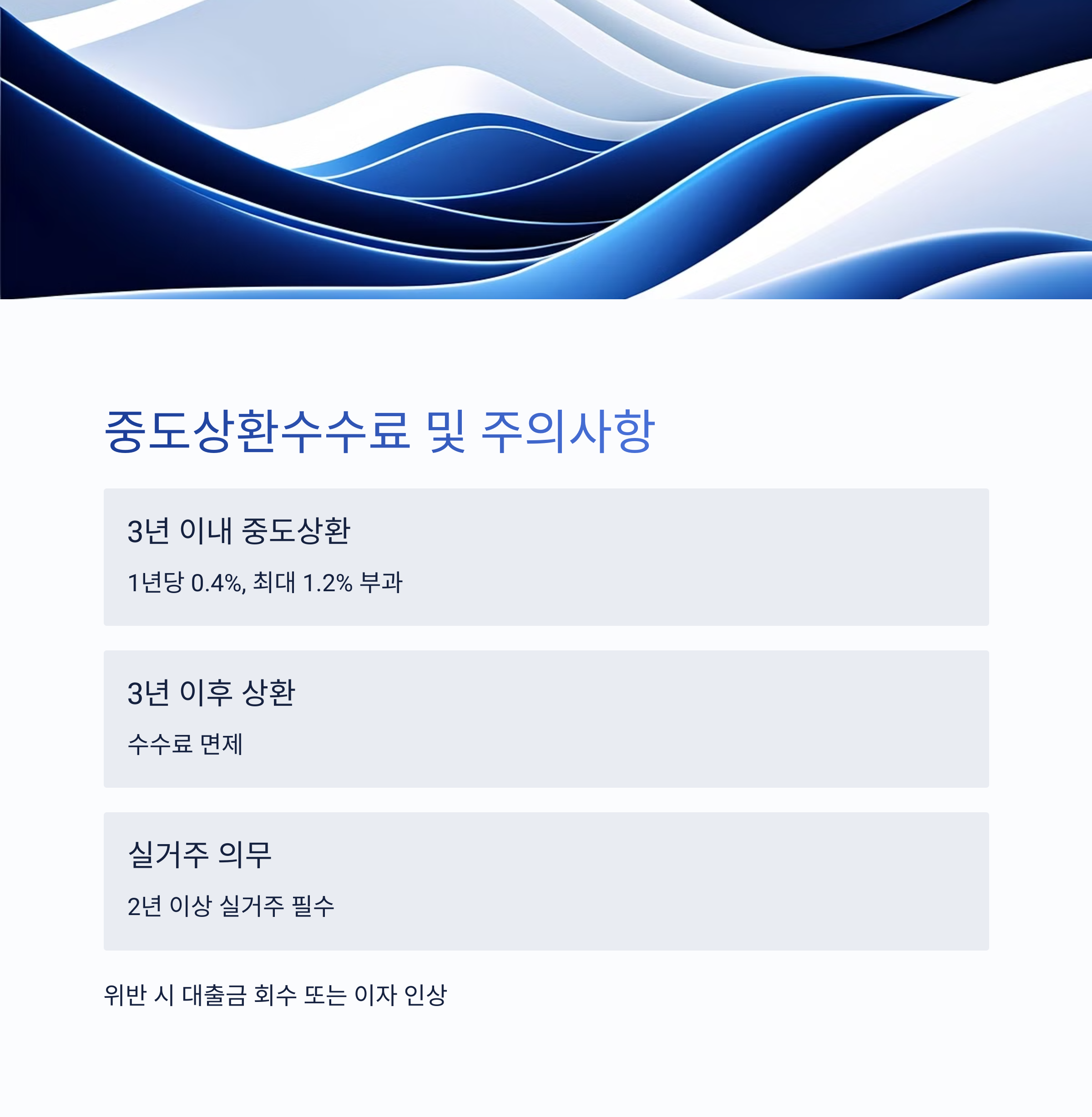 ✔ 3년 이내 중도상환 시: 1년당 0.4%, 최대 1.2% 부과