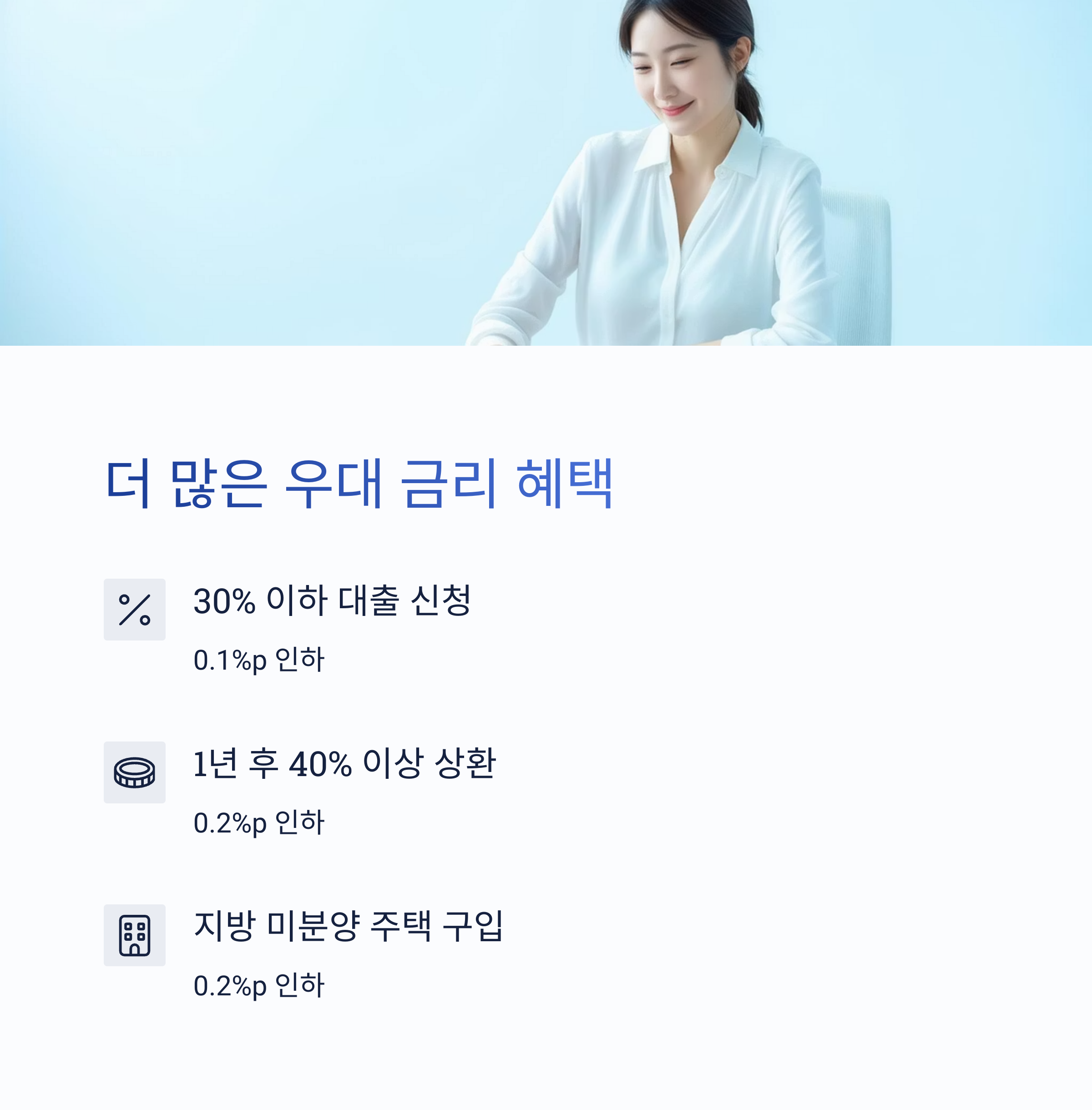 ✅ 대출심사금액의 30% 이하 대출 신청 시: 0.1%p 인하