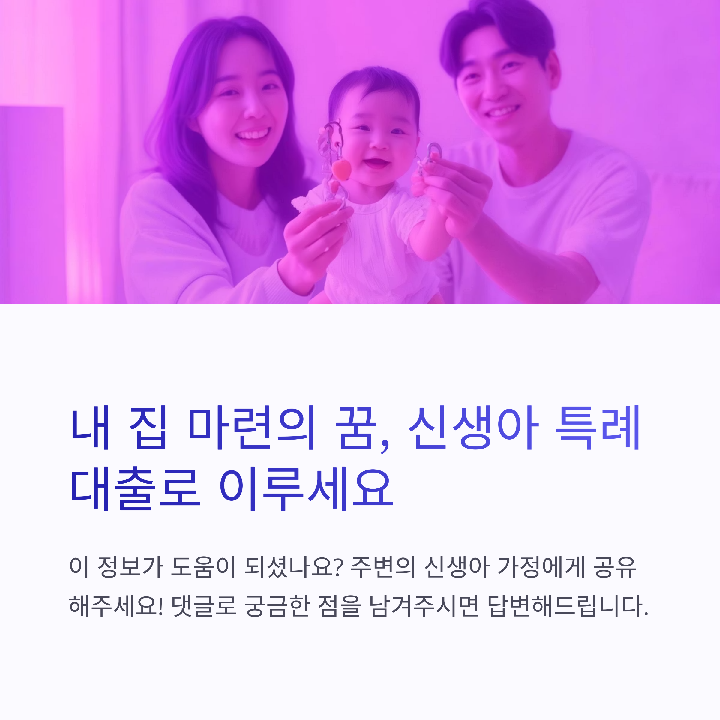 신생아 특례 대출은 내 집 마련을 꿈꾸는 가정에 실질적인 도움을 주는 정부 정책입니다. 고금리 시대에 최대 5억 원까지의 대출 한도와 낮은 금리, 다양한 우대 혜택까지 제공하므로, 신청 요건에 부합한다면 절대 놓쳐선 안 될 기회입니다.
