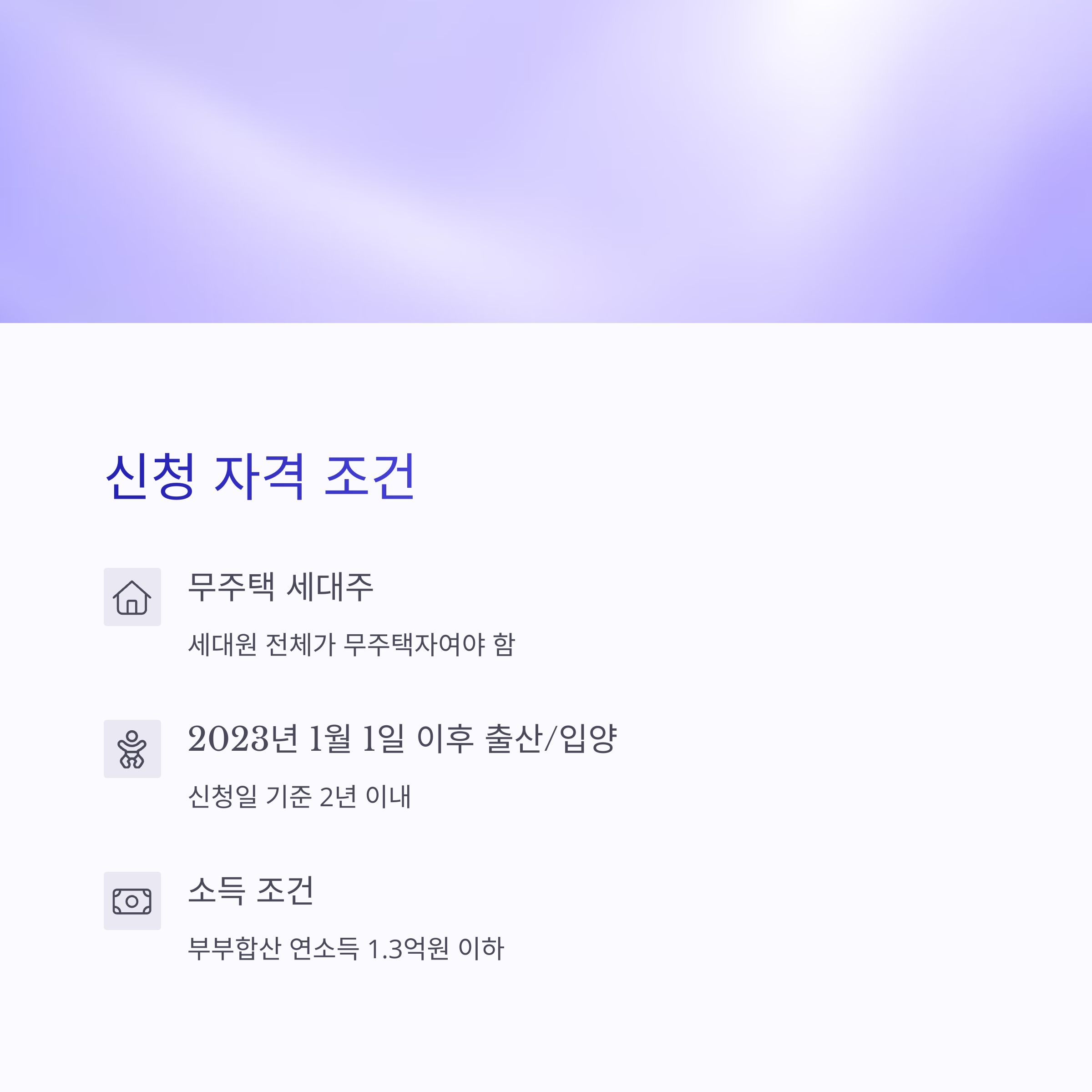 ✅ 2023년 1월 1일 이후 신생아 출산 또는 입양, 신청일 기준 2년 이내