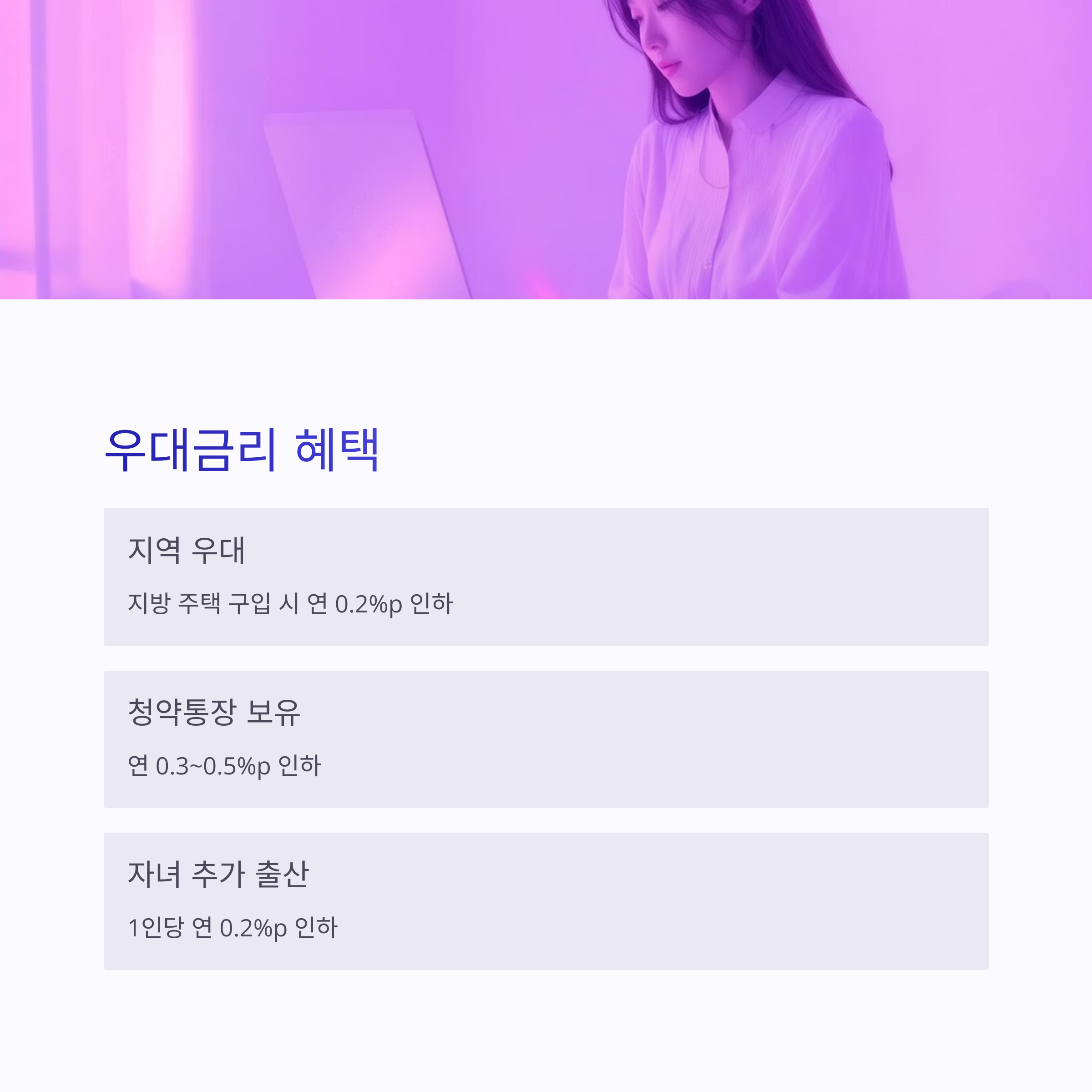 지방 소재 주택에 한해 우대금리(0.2%p)가 적용되므로, 수도권은 해당되지 않습니다.