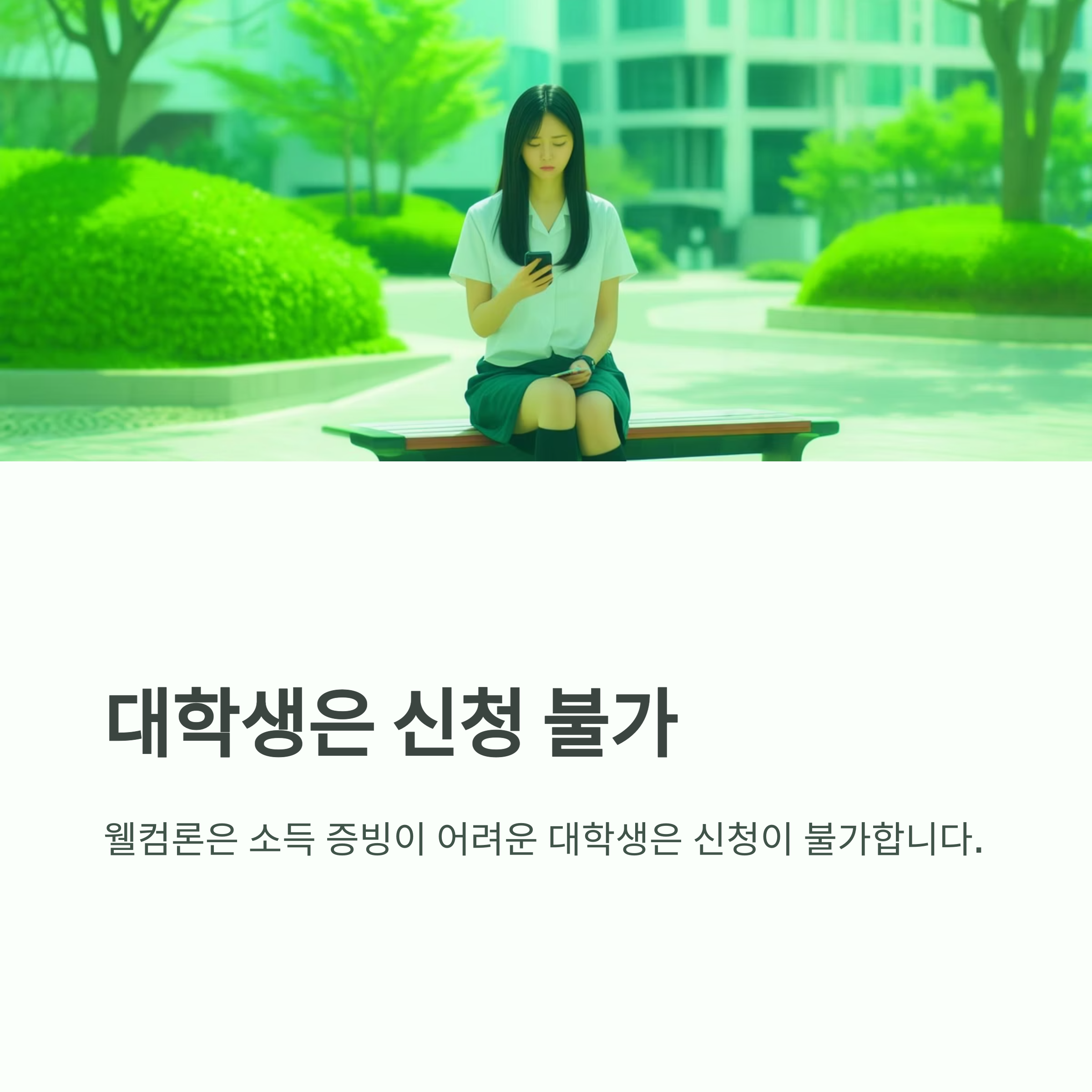 단, 대학생은 소득 증빙 어려움으로 신청 불가하니 유의하세요.