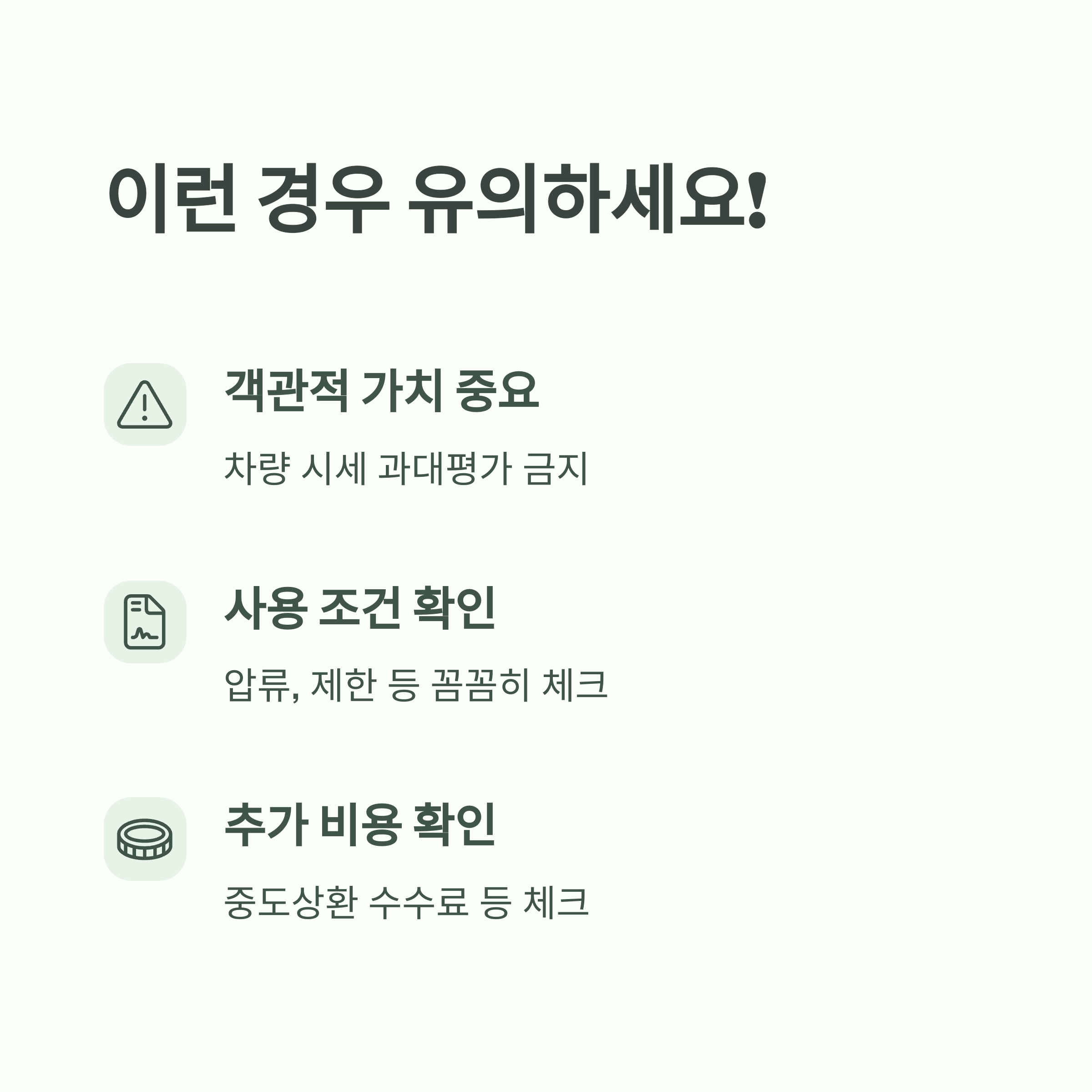 ✅ 차량의 시세를 과대평가하지 마세요 – 객관적 가치가 중요합니다.