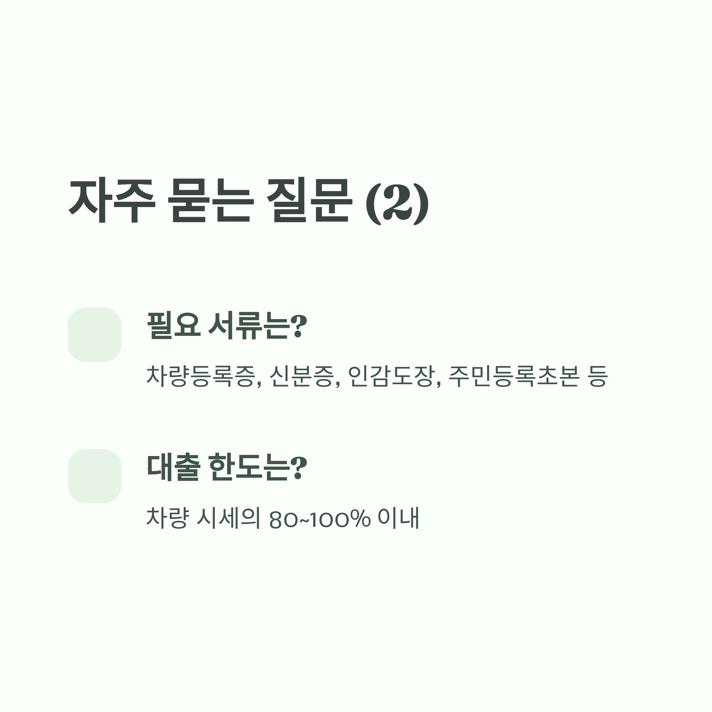 ✅ 대출 후 차량 사용 조건(압류, 제한 등)을 반드시 확인하세요.