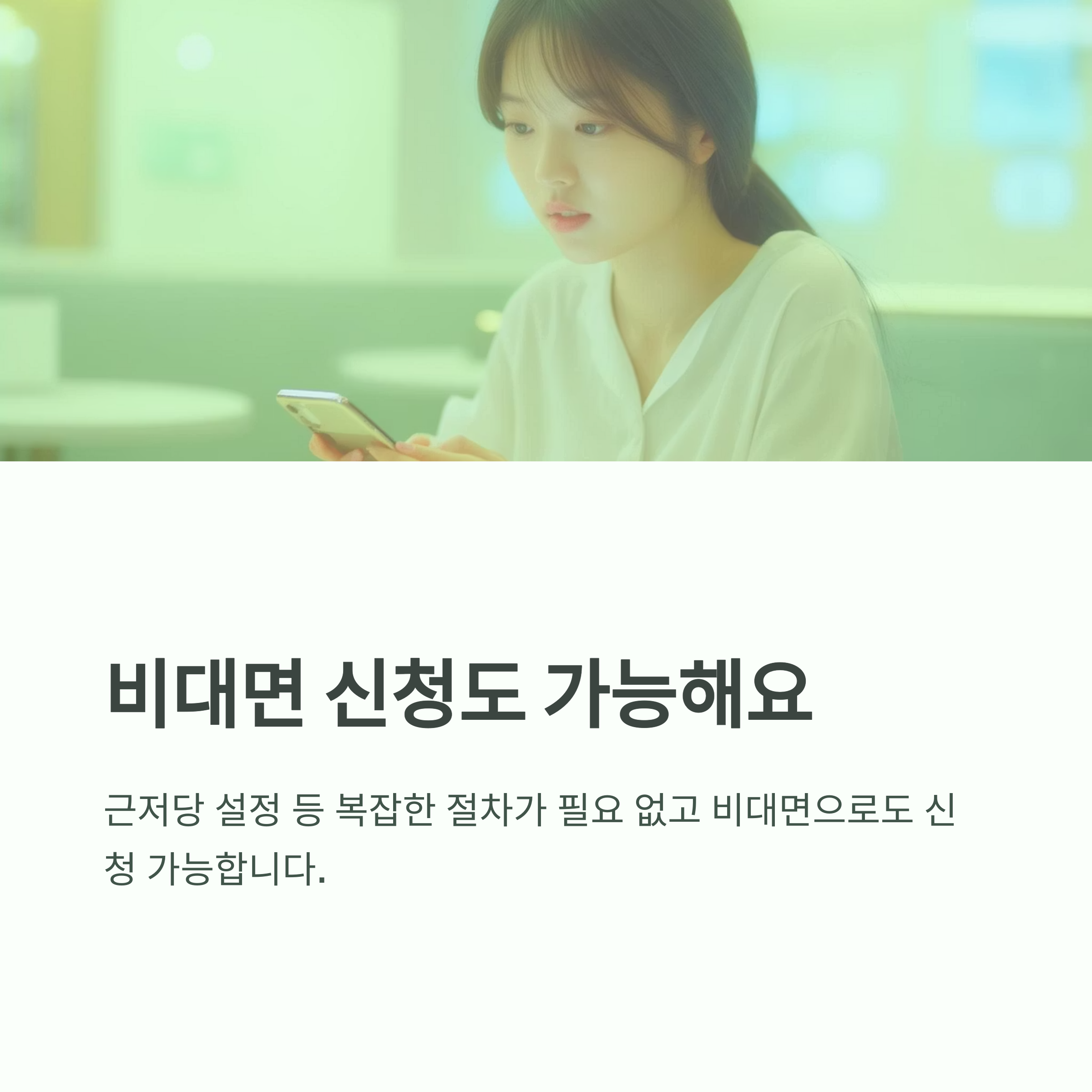 ✅ 근저당 설정 등 복잡한 절차가 필요 없고 비대면 신청도 가능합니다.