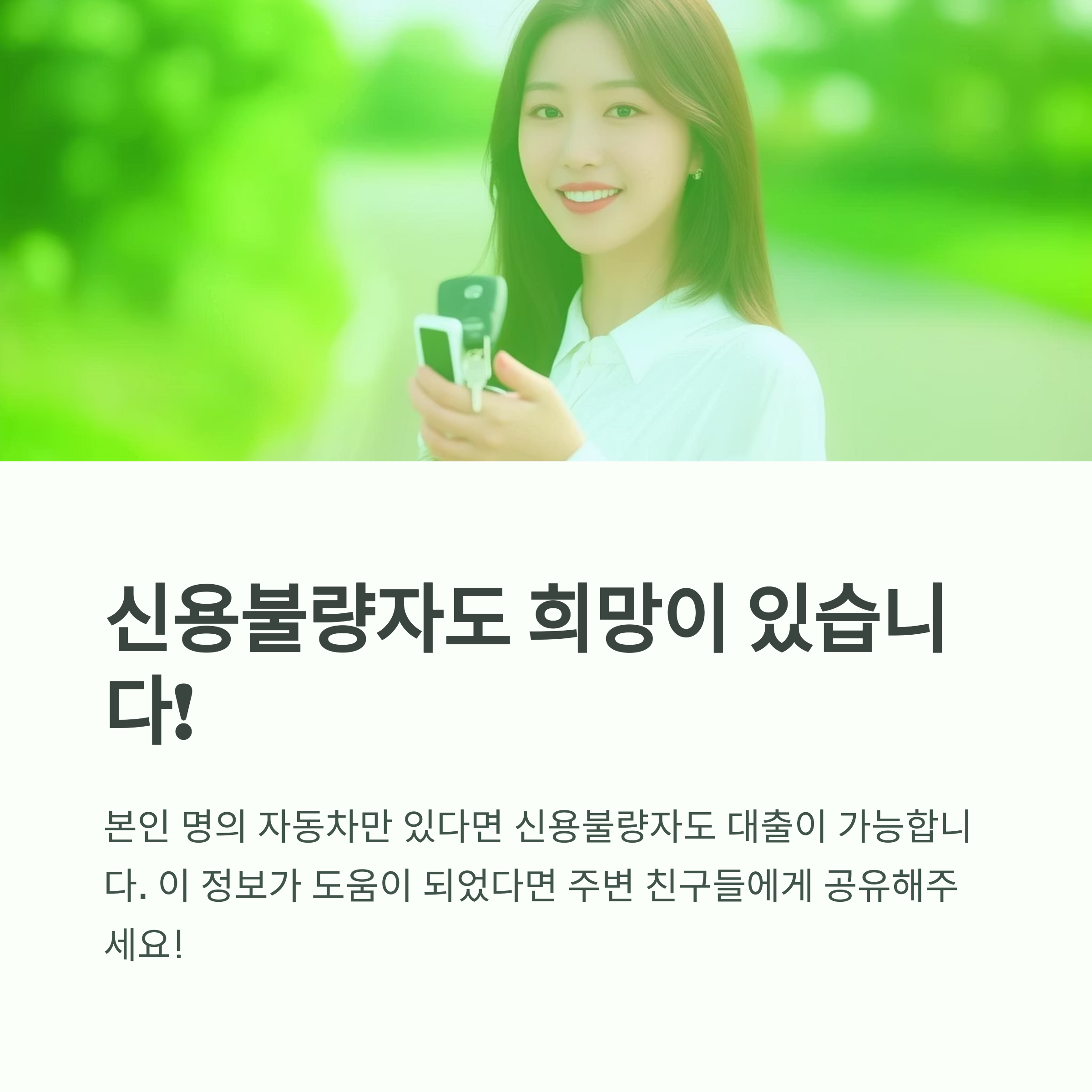 ✅ 신용등급과 상관없이 차량 시세를 기준으로 대출 가능 금액이 책정됩니다.