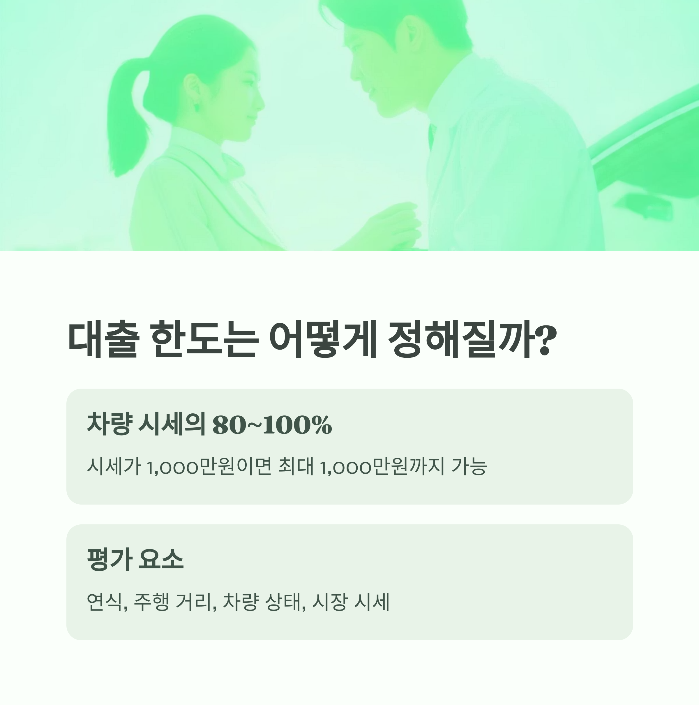 자동차담보대출의 한도는 보통 차량 시세의 80~100% 내에서 결정됩니다.