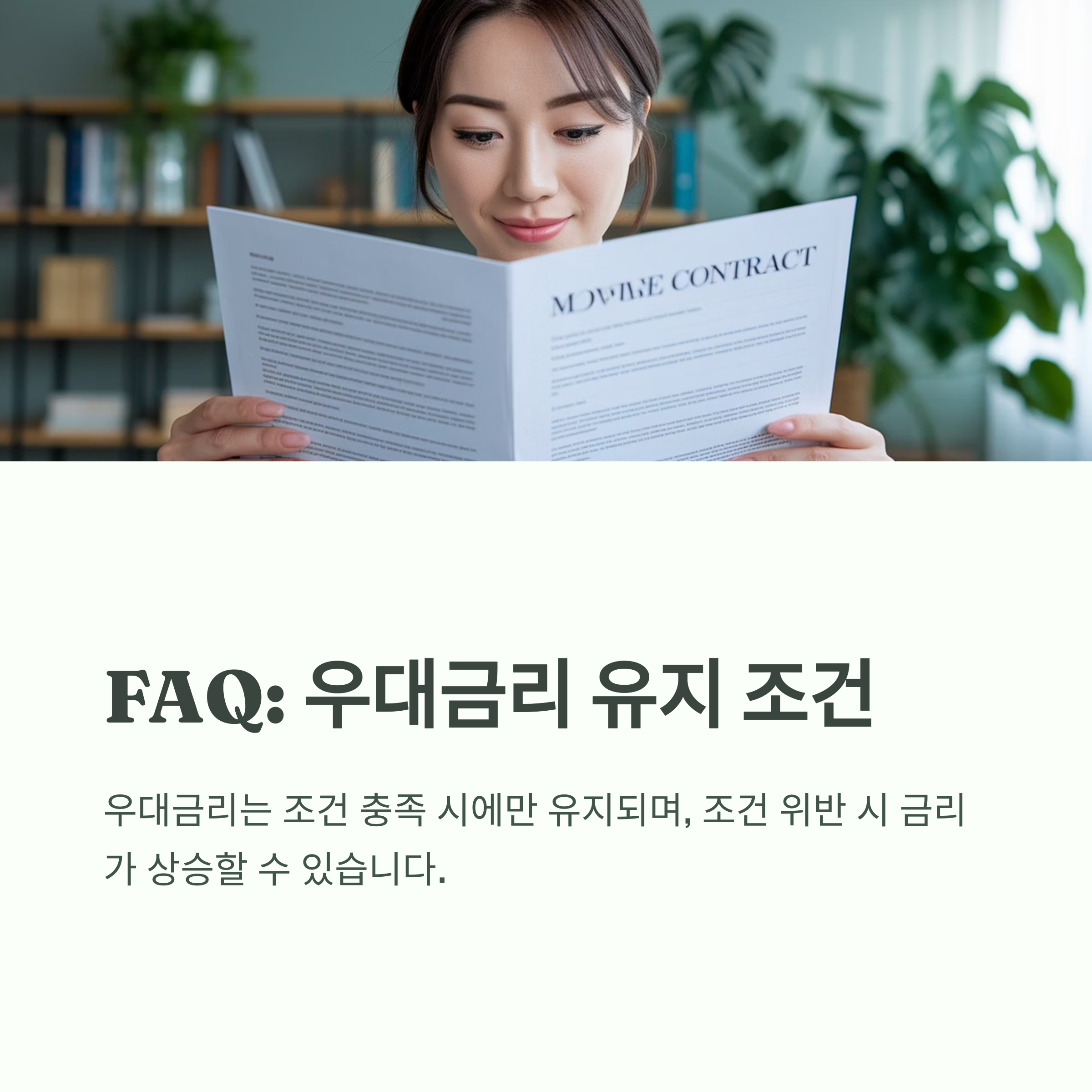 A3. 아닙니다. 조건 충족 시에만 유지되며, 위반 시 금리 상승될 수 있습니다.