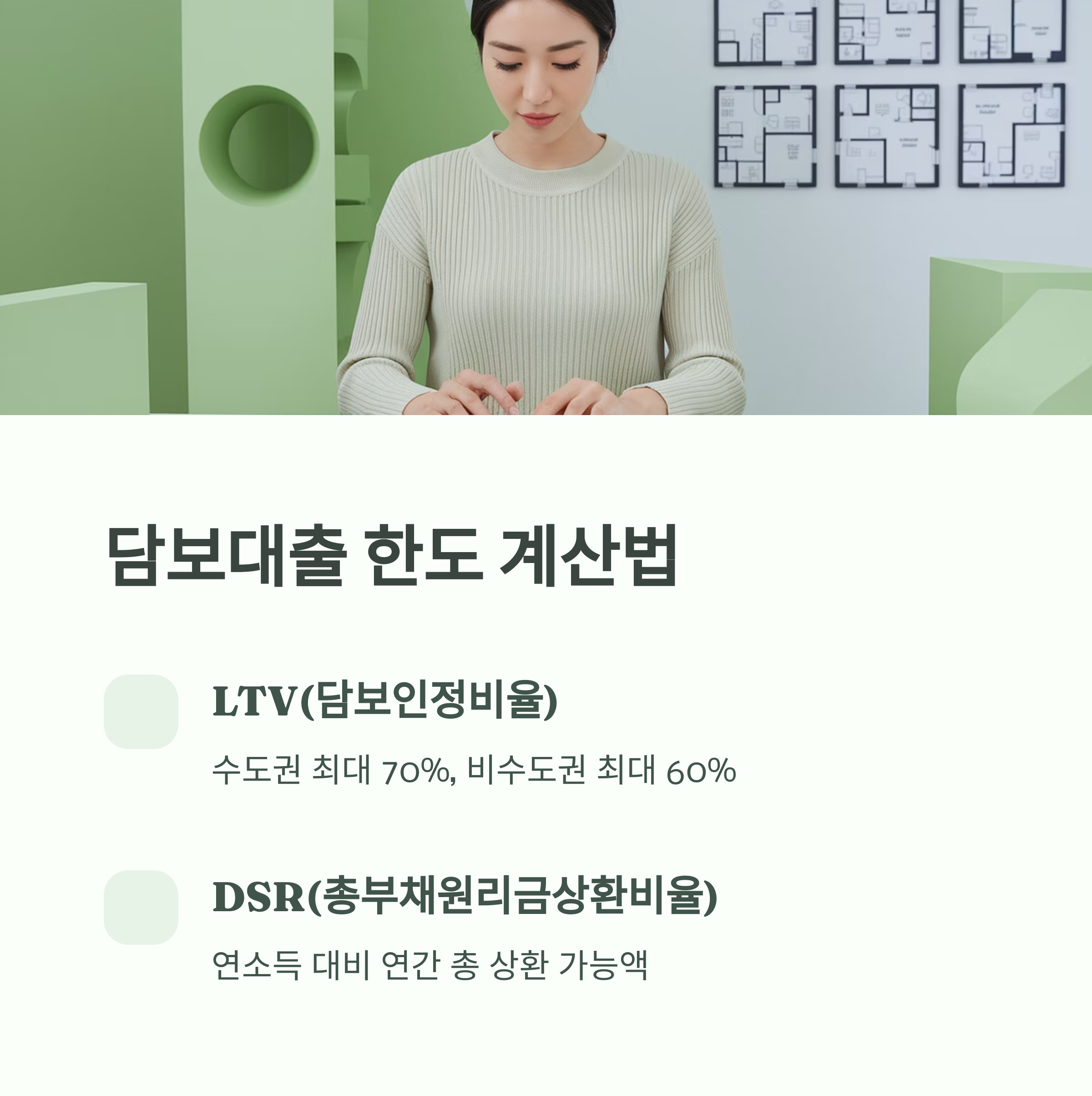 - DSR(총부채원리금상환비율): 연소득 대비 연간 총 상환 가능액