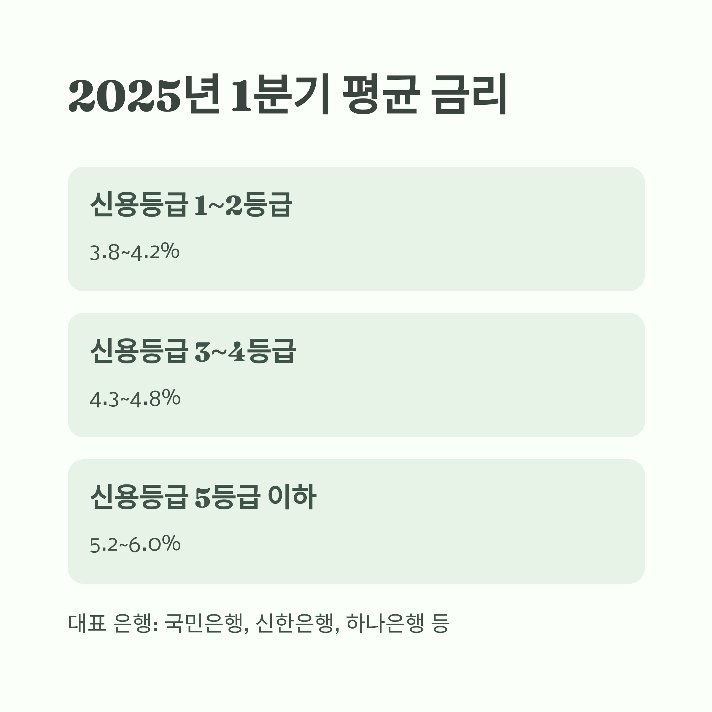 | 평균 금리 | 3.8~4.2% | 4.3~4.8% | 5.2~6.0% |