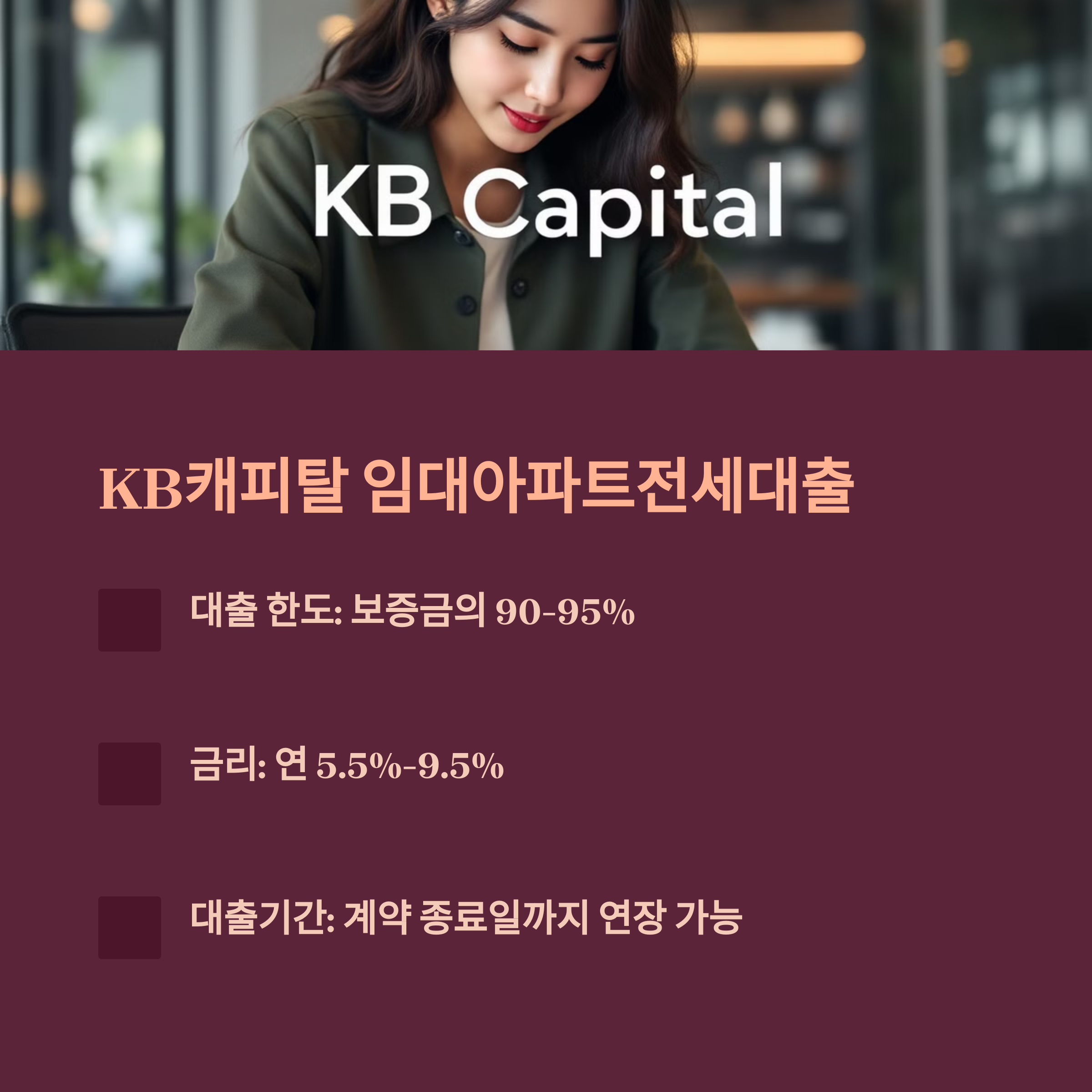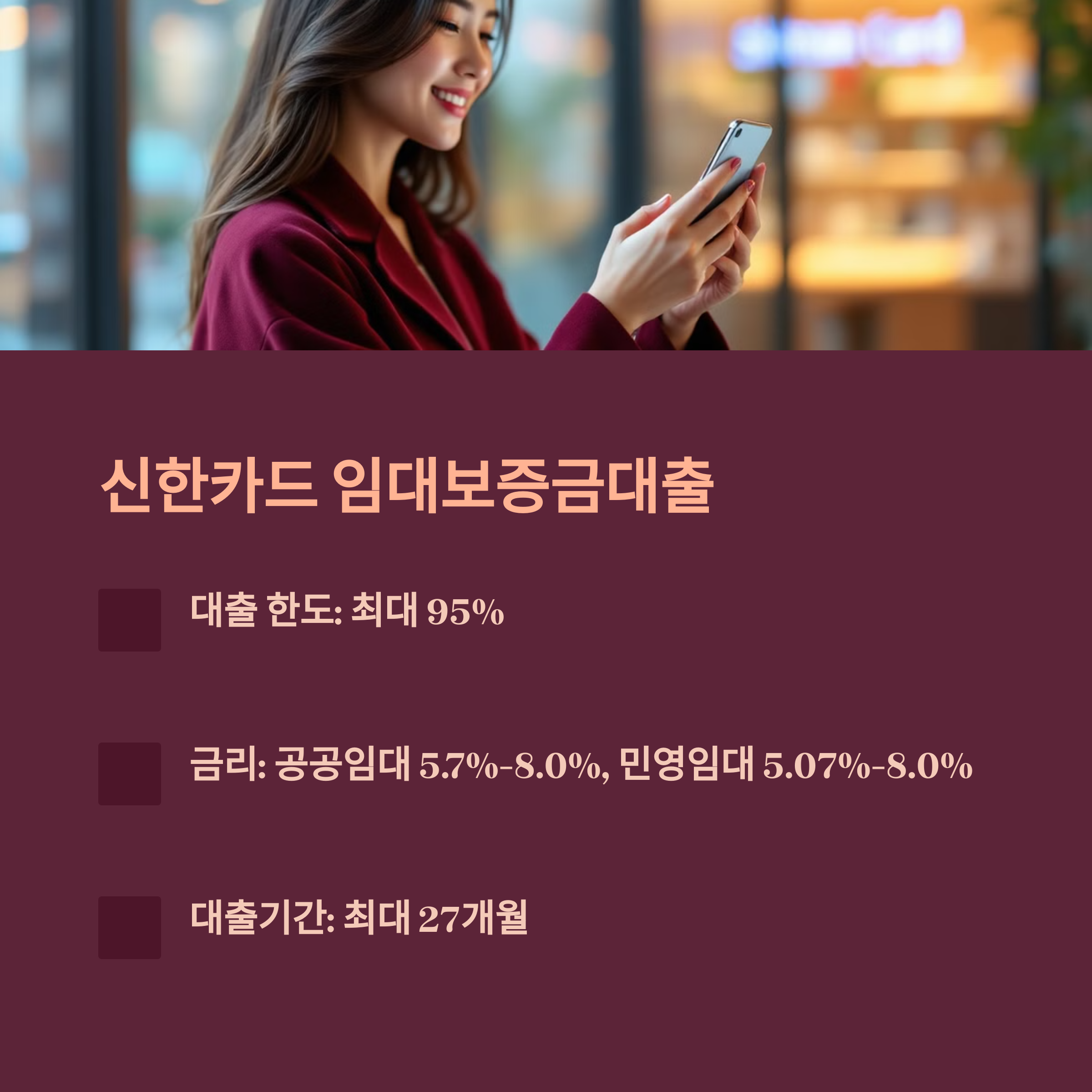 - 대출 한도: 보증금의 90~95%